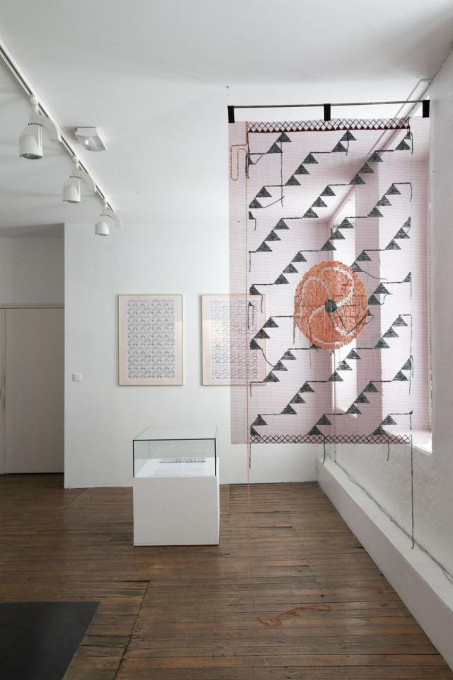 ou le tissage. L’encodage a dès lors une grande importance. Une trame préside à toute représentation ou transmission dans un format ou un médium donné. À la façon de “pièges à pensée”, les différentes pièces réalisées par l’artiste, parfois en collaboration, se présentent comme les témoins silencieux, documentation en suspens d’un “bruit de fond” dont les sources ne sont pas toujours identifiables et dont le propos nous échappe.