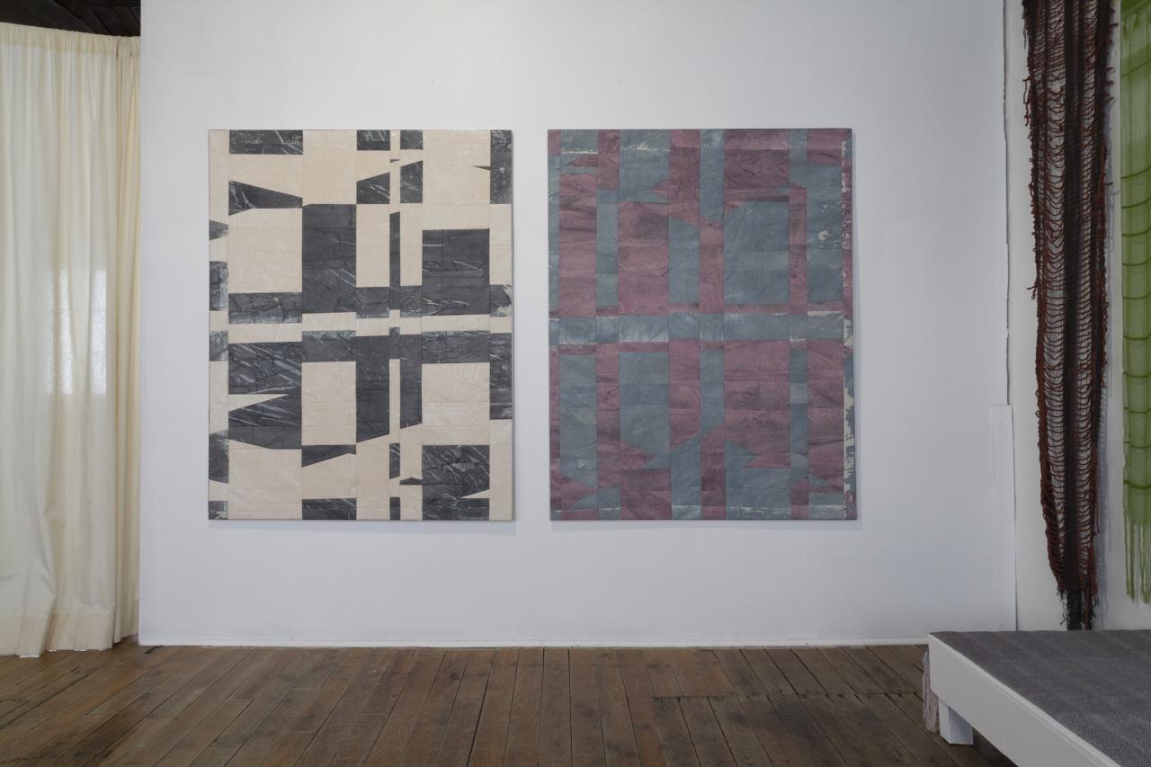 1 0 1 0 1 0 0 0 1, 2023, reconstituted peintings, no. 1 and no. 2