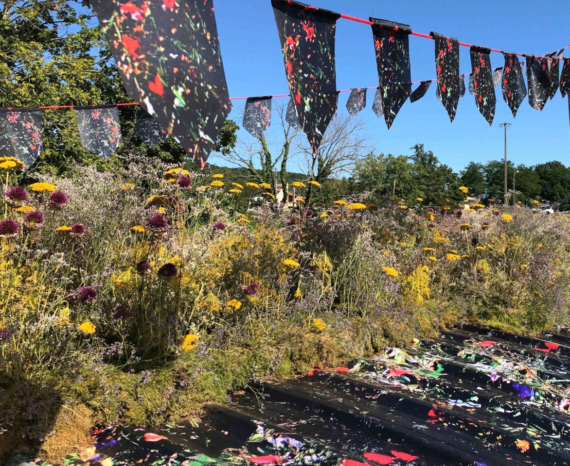 The installation La Prairie on the barge Le Tourmente articulates a series of images of flowering meadows, digitally processed through a succession of photographic layers to extract a real and abstract motif. With this ornamental system, Béatrice Utrilla evokes Gilles Clément’s flower meadows, “a living space left to the free development of the species that settle there”.