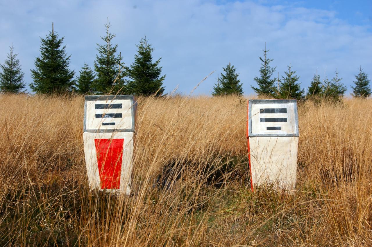 Installed on the outskirts of Senones, in the Vosges, at the edge of a path, two sandstone gas pumps act as distance markers.