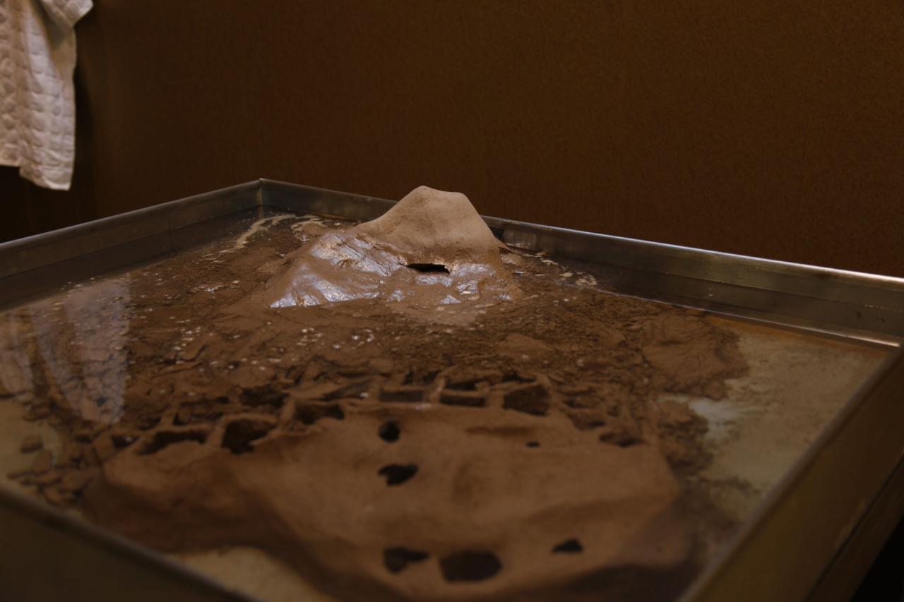 Lisca Bianca is a dry clay sculpture which disintegrates during the exhibition which hosts it.