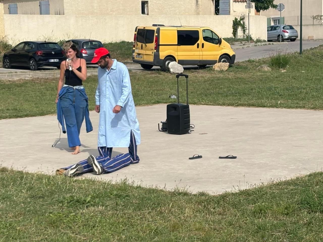 This performance, staged on election day between the exhibition space and the polling station in the village of Loupian, provided an opportunity to question the public, including the mayor as he left the polling station, about inequalities and the necessary struggle to combat them.
