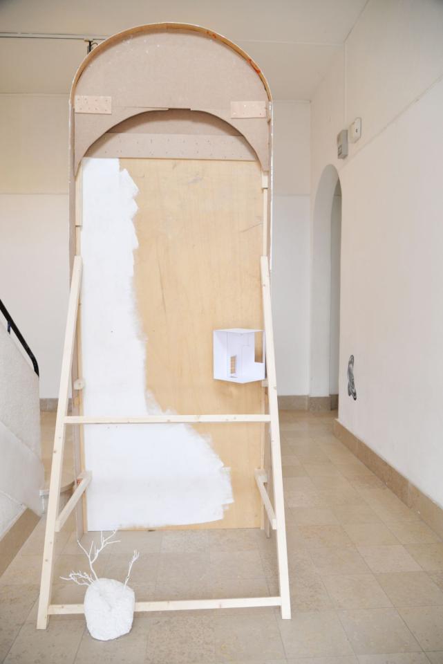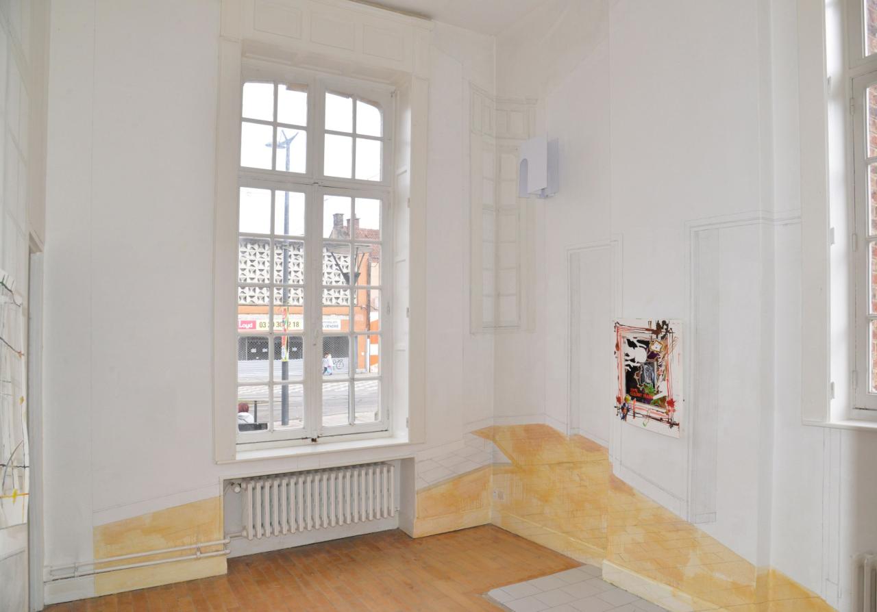 Ce qui caractérise cette exposition, outre ces échanges et ce désir de croisement entre les pratiques, est notre rapport à l’espace et à l’architecture. Ce lieu d’exposition si particulier qu’est l’École d’arts plastiques de Denain, avec son enchaînement de petites pièces et son hall, lieu hydride d’exposition, de passage, d’attente, est devenu notre sujet. Les volumes sont réinventés et de nouvelles percées, fictives et physiques se créent. Nos œuvres produisent de nouveaux espaces, qu’ils soient mentaux ou palpables, qui nous permettent de diversifier nos possibilités d’accrochage.