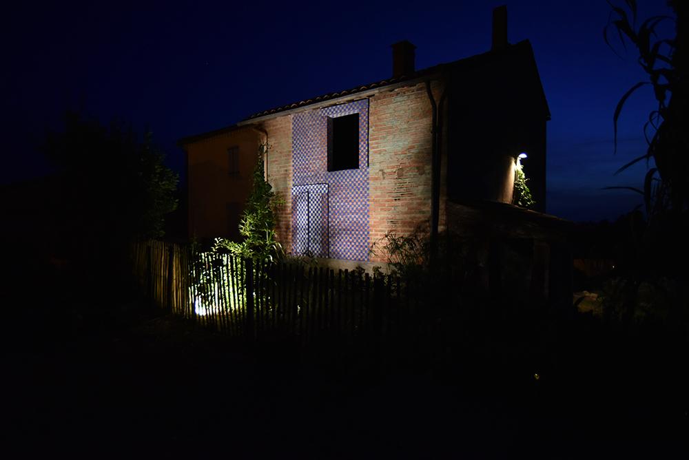 Si la pratique d’Ariane Loze implique intrinsèquement le registre du narratif, dans le cas présent et de manière assez similaire à l’approche de Célie Falières, un « processus-récit » se mit en place, non pas à partir de récupérations d’objets, mais en collectant des paroles auprès d’habitants du village, invités à confier un souvenir de l’une des dix-neuf précédentes éditions du festival. In fine, certains de ces fragments enregistrés purent s’entendre dans la proposition, comme si des voix sortaient des interstices de l’habitat.