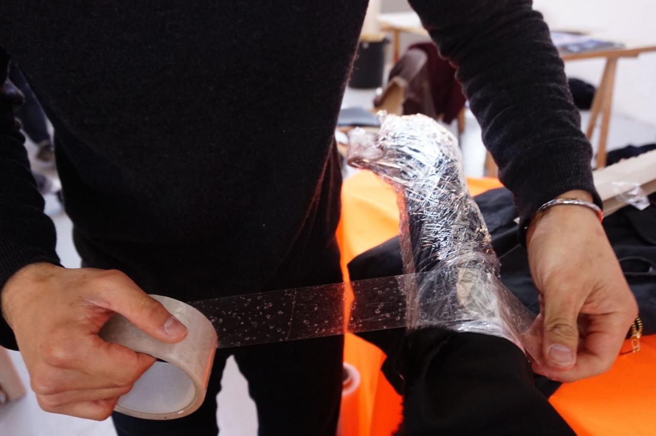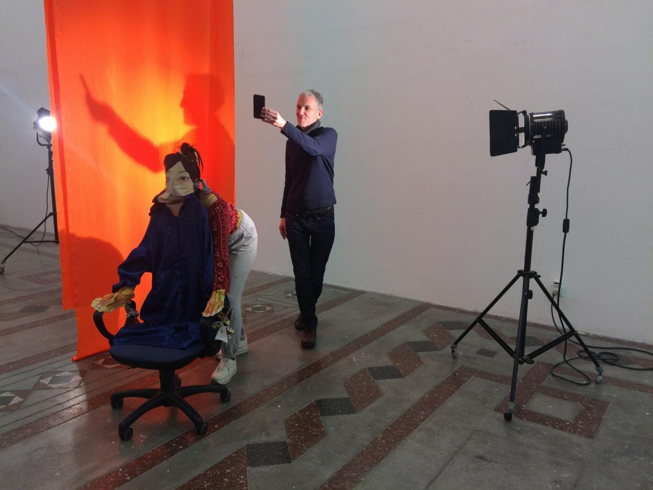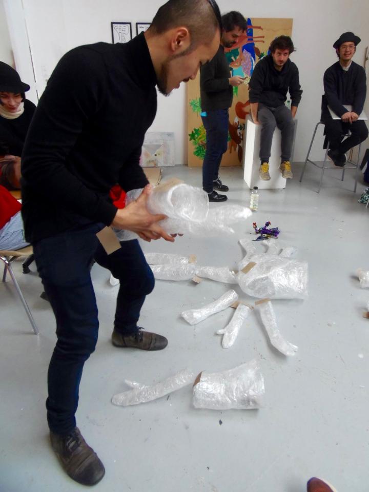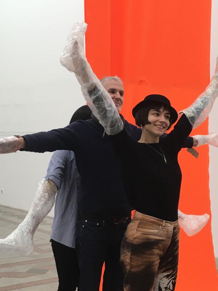 Diane, Hervé et Socheata font une performance avec le moulage.