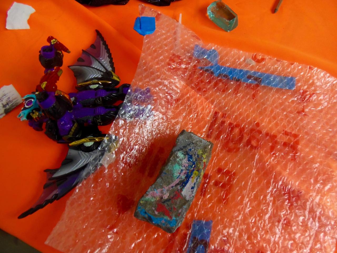 Après le workshop, Socheata réalise des objets avec les confettis, quand Catherine les évoque dans un de ses textes.