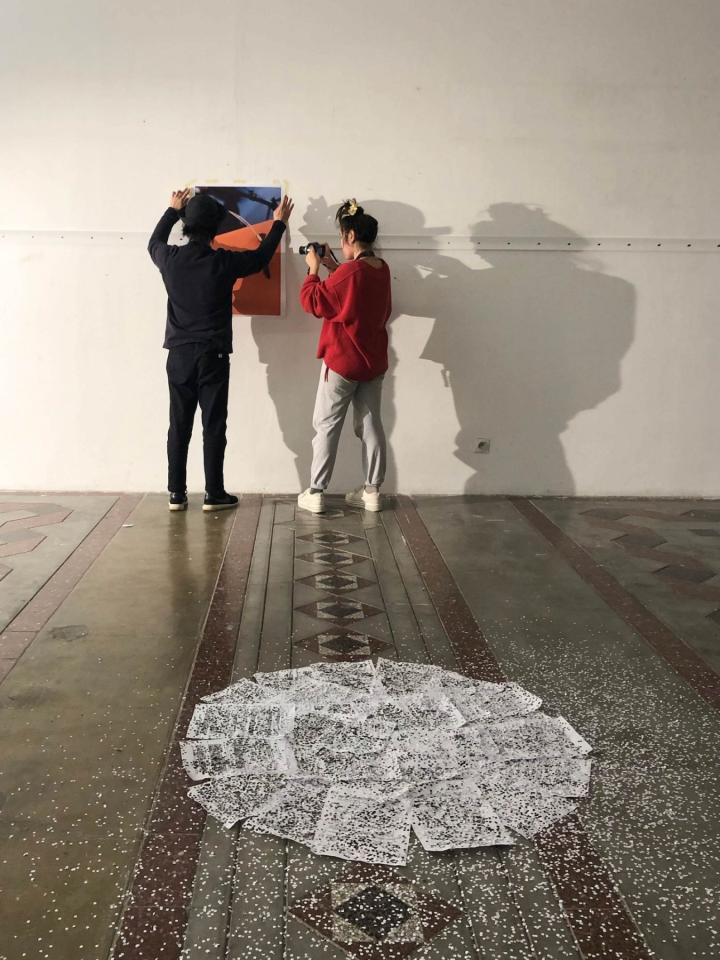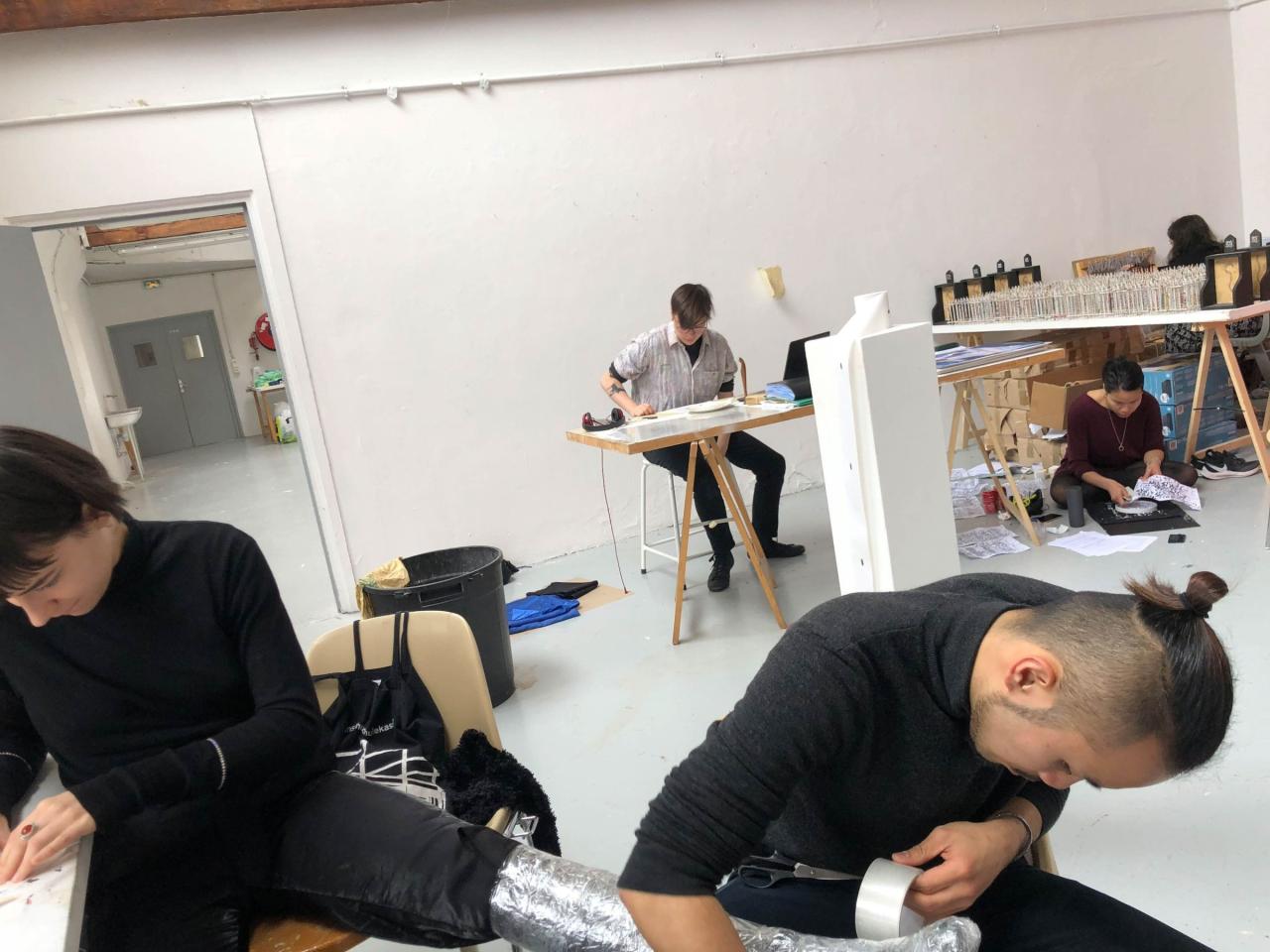 Socheata, Romane, Hsing-Fu, Diane et Alizée font une installation au Palais des arts.