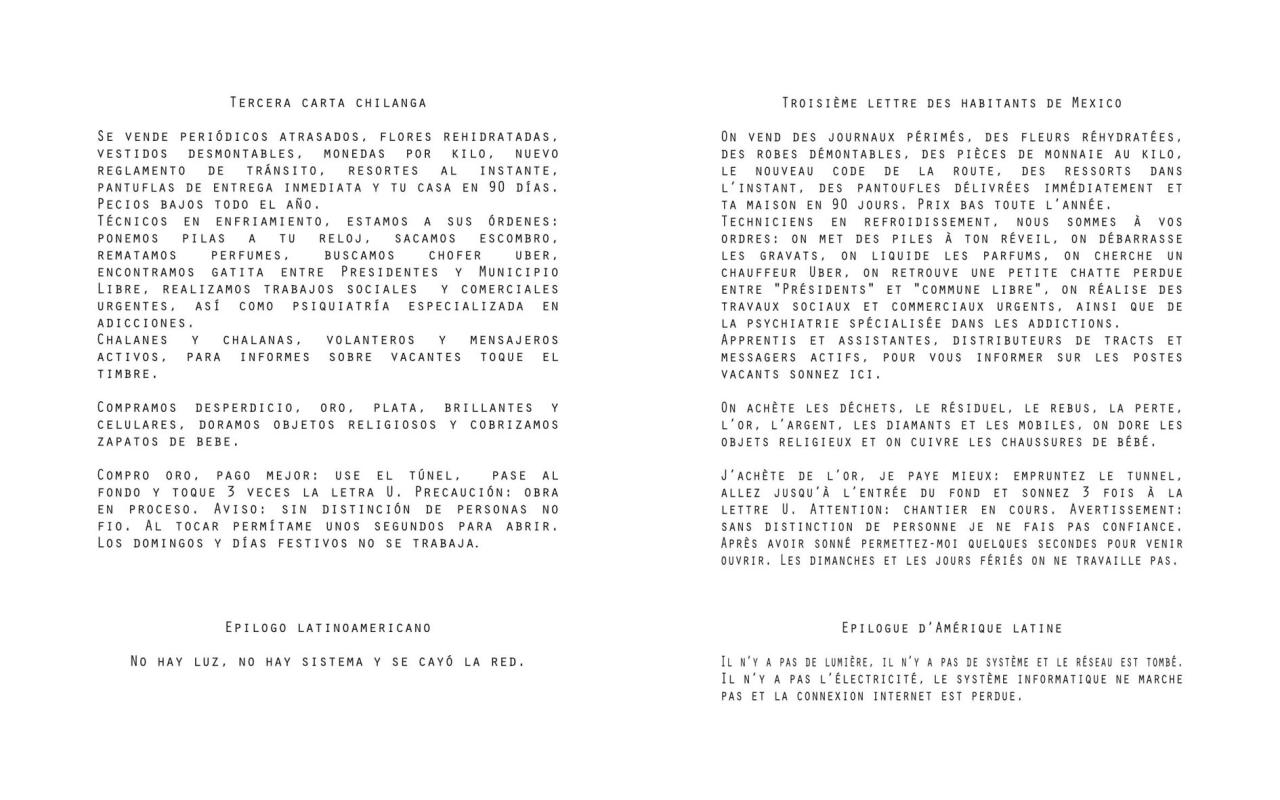 Hecho en México, 2016, ensemble de trois double-textes espagnol/français, 25x40 cm