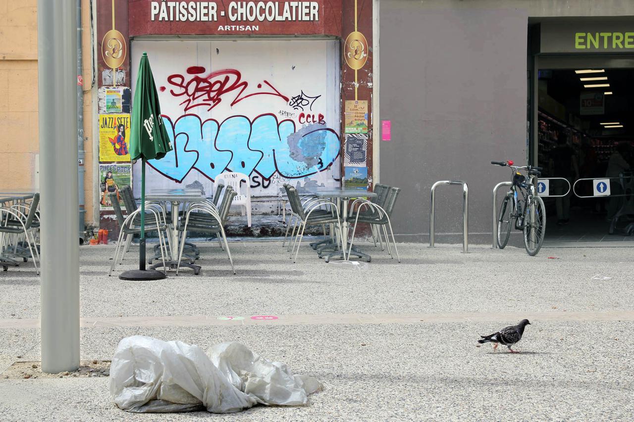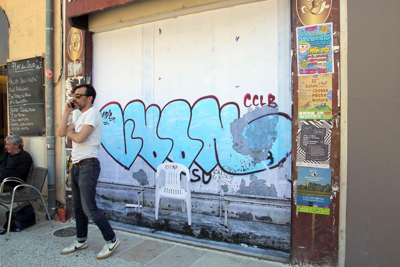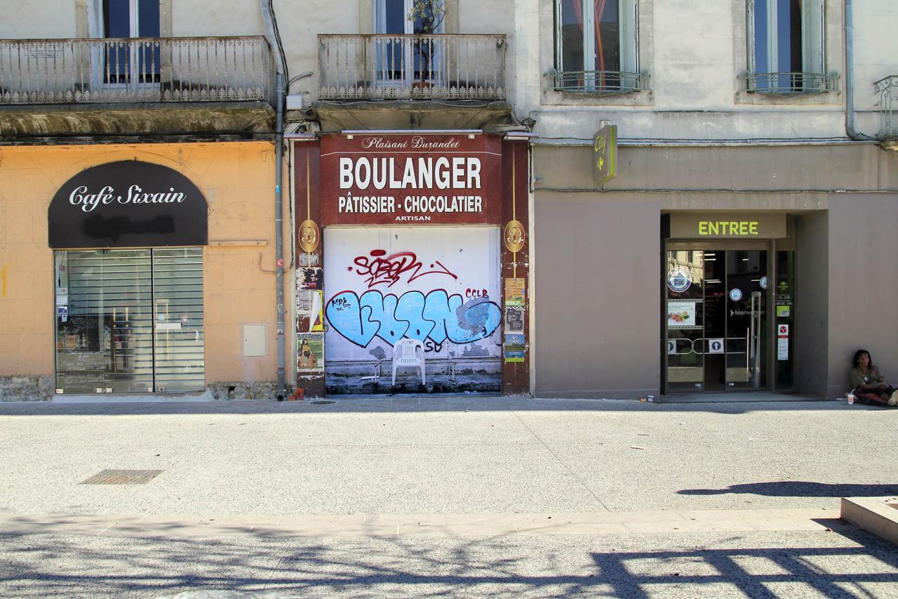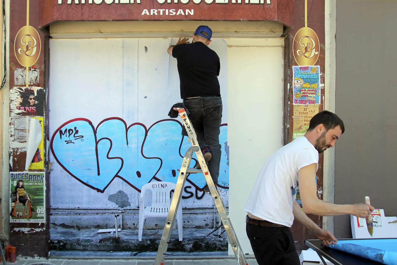 La place d’Elena, 2019, installation, repainted by the council’s anti-graffiti services, Montpellier, France