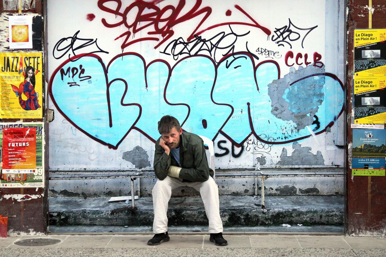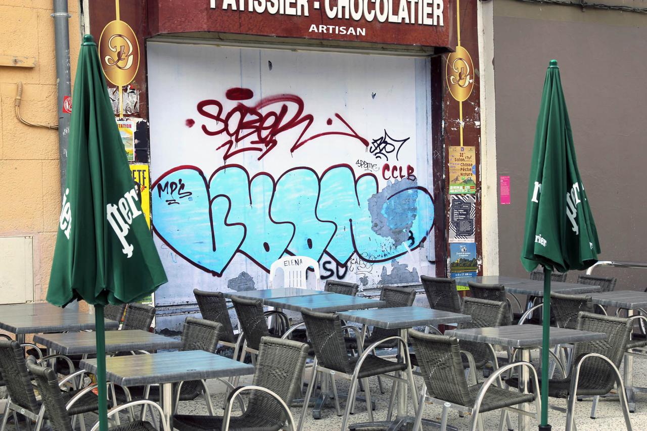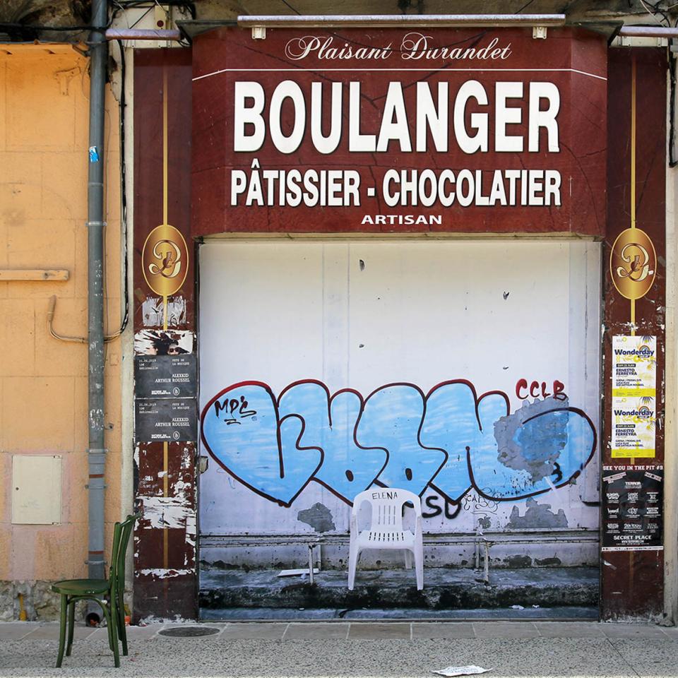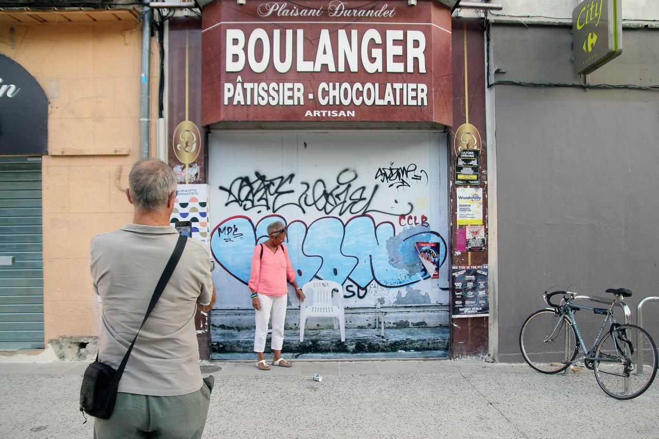 La place d’Elena, 2019, installation, repainted by the council’s anti-graffiti services, Montpellier, France