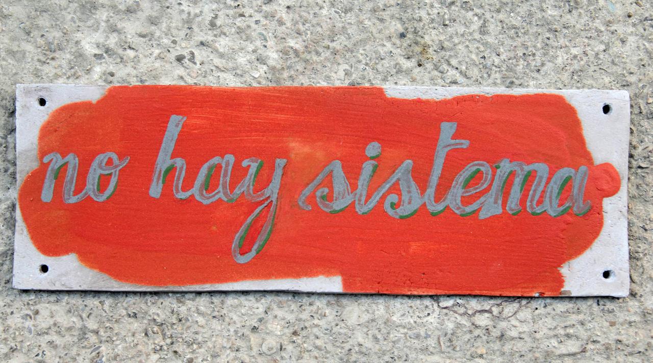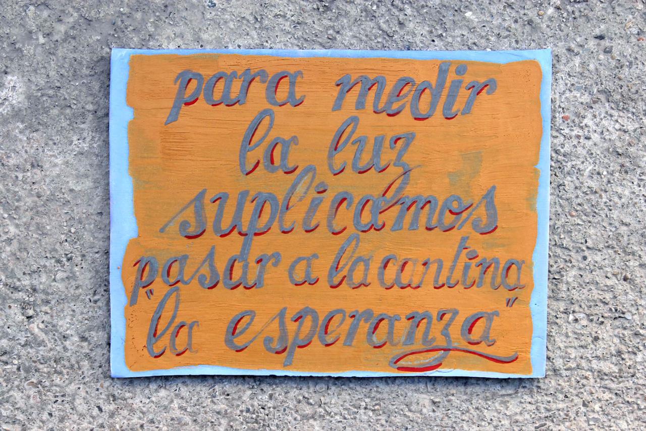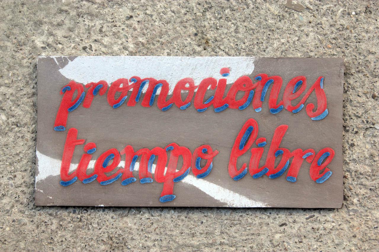 Ces « exercices de peinture » à l’engobe ou à l’émail sur plaques de terre cuite sont inspirés de la pratique toujours vivante des rotulistas, les peintres en lettre traditionnels mexicains, et sont réalisés à partir d’une collecte de letreros (petites annonces ou messages informatifs laissés dans les rues de Mexico).