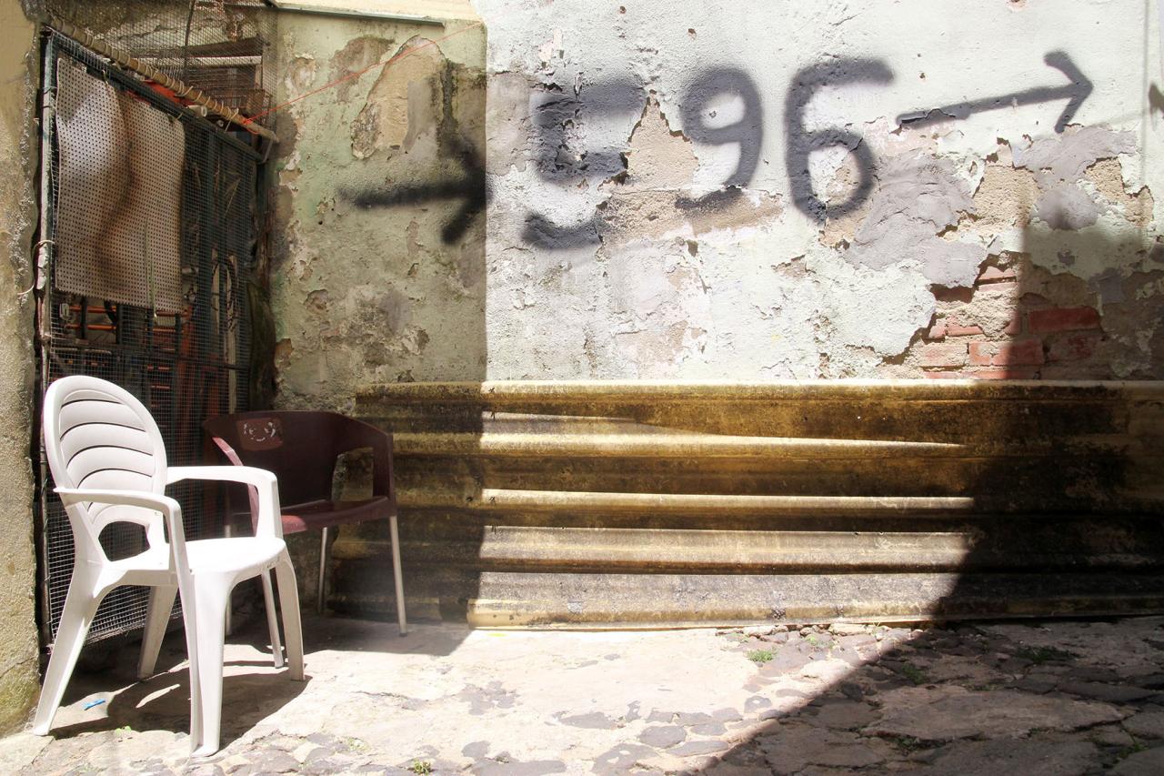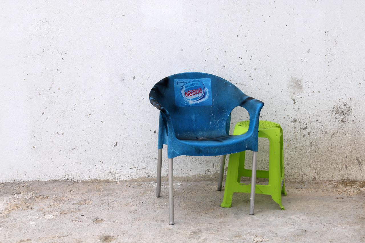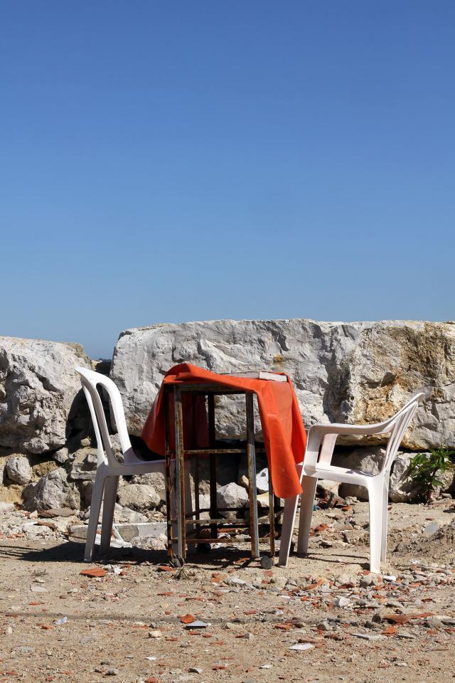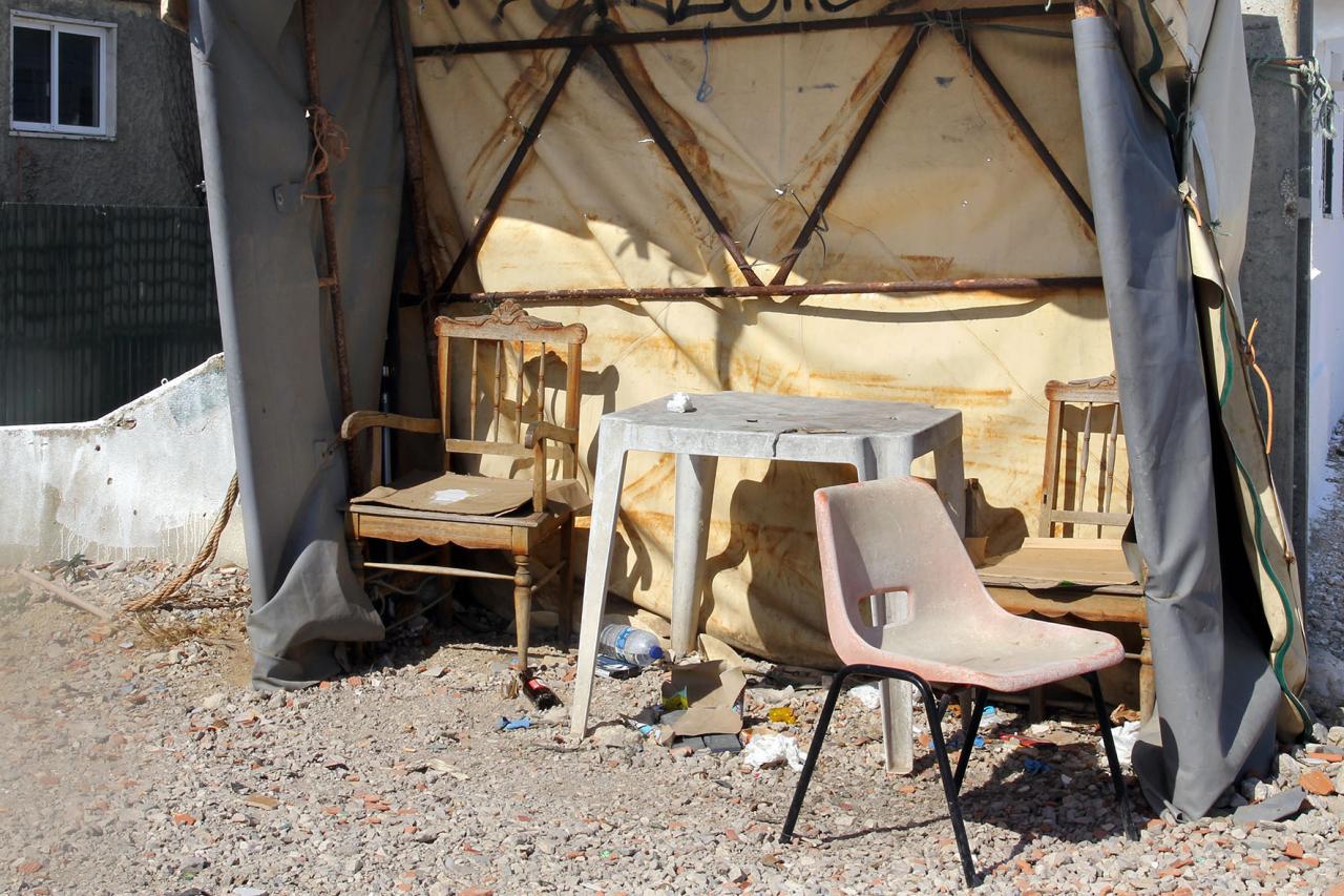 This series of photographs focuses on chairs in public spaces, from Cova do Vapor (a self-built micro-fishing village located on the point where the Tagus meets the Atlantic Ocean) to certain areas of Lisbon (working-class neighborhoods in the hills of Belem and Ayuda). From Cova to Trafaria (the embarkation point for crossing the Tagus), between the water’s edge and the main road, lies a vague area of makeshift camps and precarious dwellings (Torrão 2 and São Pedro de Trafaria). Along this route, in the images I have taken, these situations involving chairs affirm an idea: taking one’s place somewhere in a world that does not provide one with one, where one can and as one can, but in a precarious yet resilient way. Beyond signifying the occupation of a personal place in public space, there is the collective act of taking one’s place by means of improvised housing. Whether it be with houses built on top of each other in an area reduced by the advance of water, and initially without rights, by the fishermen of Cova themselves, with the slum of Torrão 2, between pine forest and illegal dump, with the precarious constructions of São Pedro de Trafaria, or with the occupation of disparate and rehabilitated housing in the upper districts of Belem, in Lisbon. Collecting these images of chairs is also a way of drawing, with this recurring motif, a whole that connects various places in a vague area and evokes a human presence in relation to a social environment and a landscape.