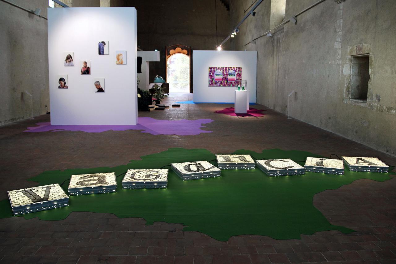 In a second step, I use them to form other words, in a new form, in a different situation. The choice of words is inspired by words encountered in the city, particularly in graffiti. The Portuguese, French, or other language is chosen taking into account the origin of the words and the context in which they are de-situated during an exhibition.