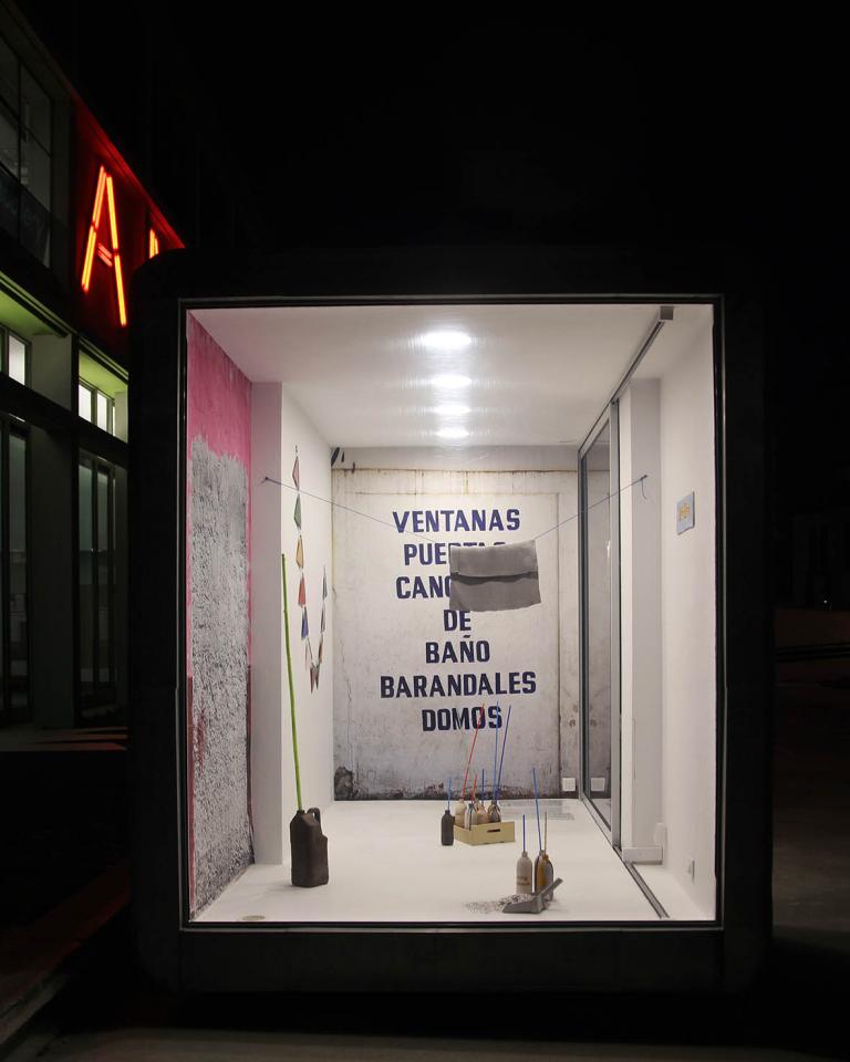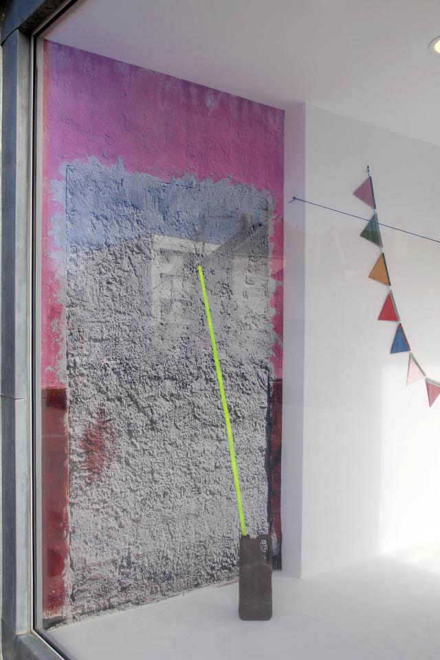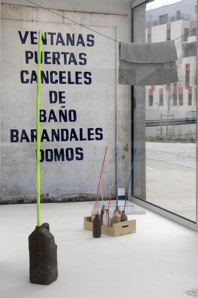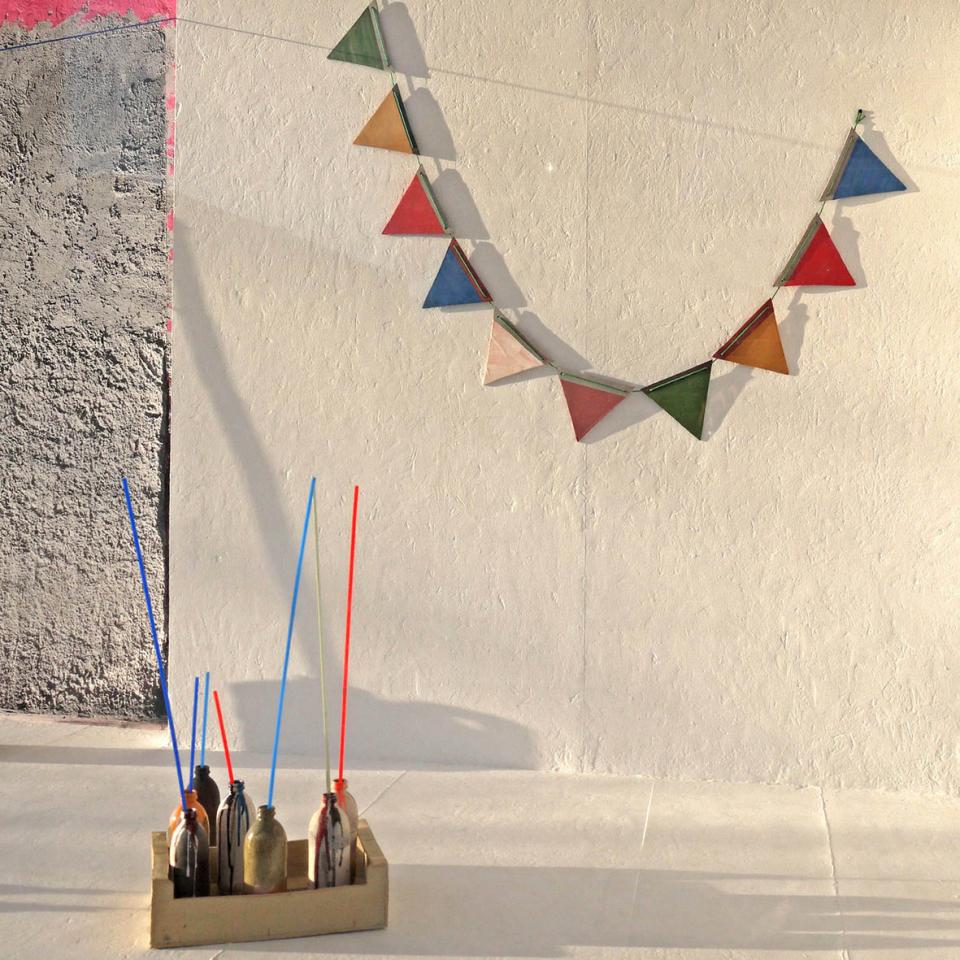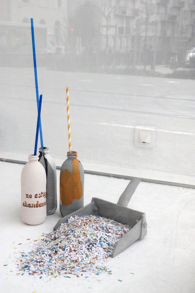 The works were chosen to articulate the terms of celebration with those of housekeeping, the space of the studio with that of the street. They can be perceived as traces of a completed activity, as elements left unfinished, abandoned or signifying a presence waiting for someone to return.