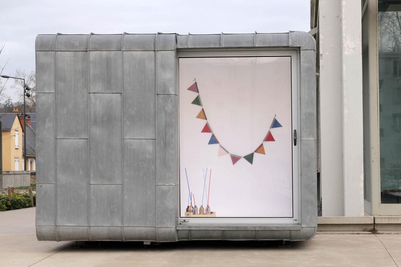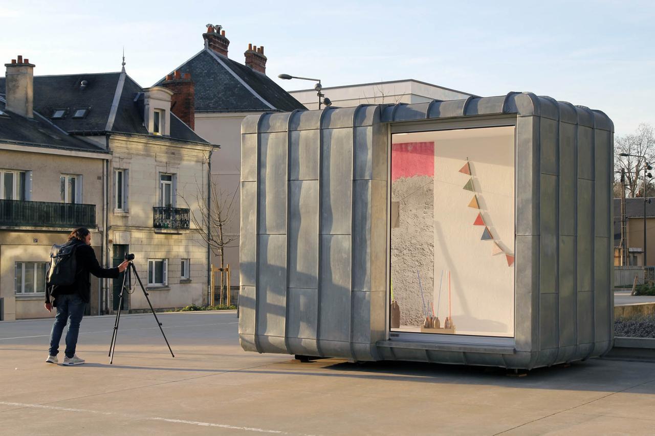 La borne is a travelling exhibition module from POCTB – le pays où le ciel est toujours bleu, which takes place in public spaces and is installed in a new town every two months in the Centre-Val de Loire region.