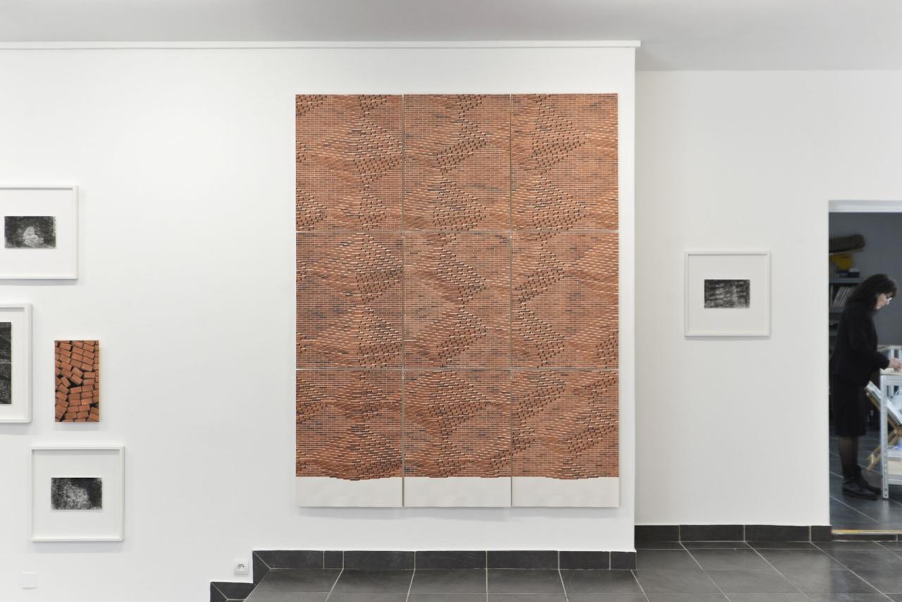 Asada III, 2022, aquarelle sur papier Arches 356 g, 180 × 240 cm, vue de l’exposition personnelle Ce rouge là, c’est un feu sur une plage, Galerie Robet-Dantec, Nantes, 2025, photo Leah Desmousseaux