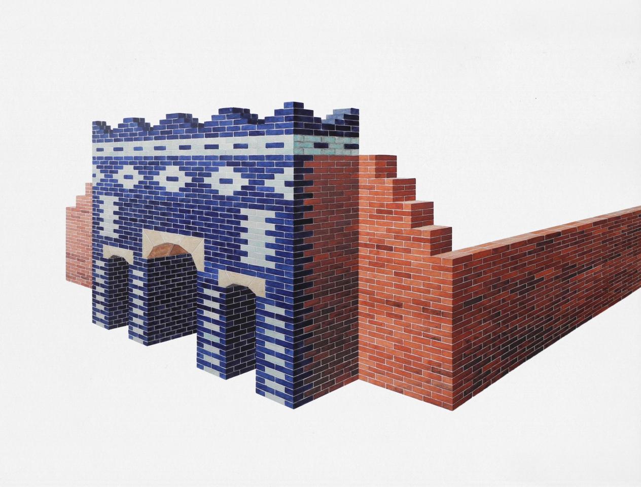 Les murs de Babel I (2), 2016, aquarelle sur papier Fabriano 300 g, 75 × 100 cm, collection particulière