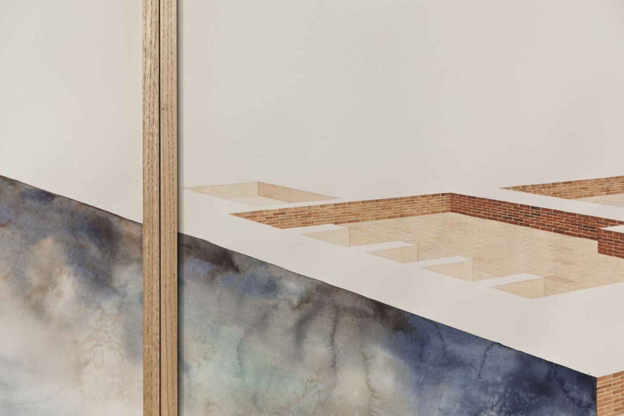 Les champs d’Asphodèles (1), 2019, aquarelle sur papier Arches 356 g, triptyque, 100 × 180 cm, collection Artothèque d’Angers, détails