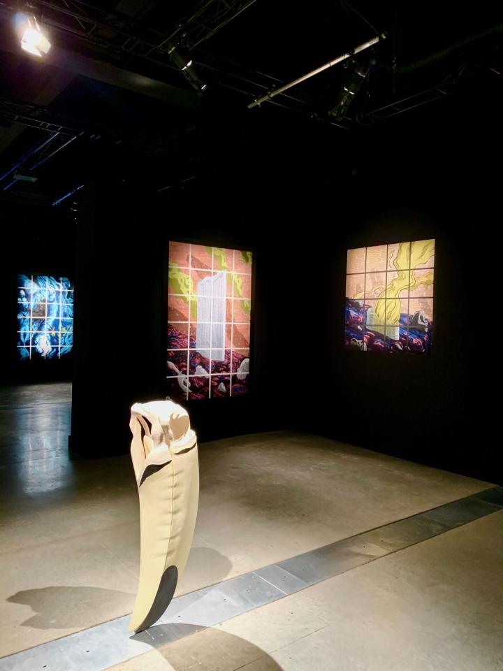 Entropia, 2021, encres, 200 x 130 cm, vue de l’exposition I A V (Intelligence artificielle vivante), Pont du Gard, 2022