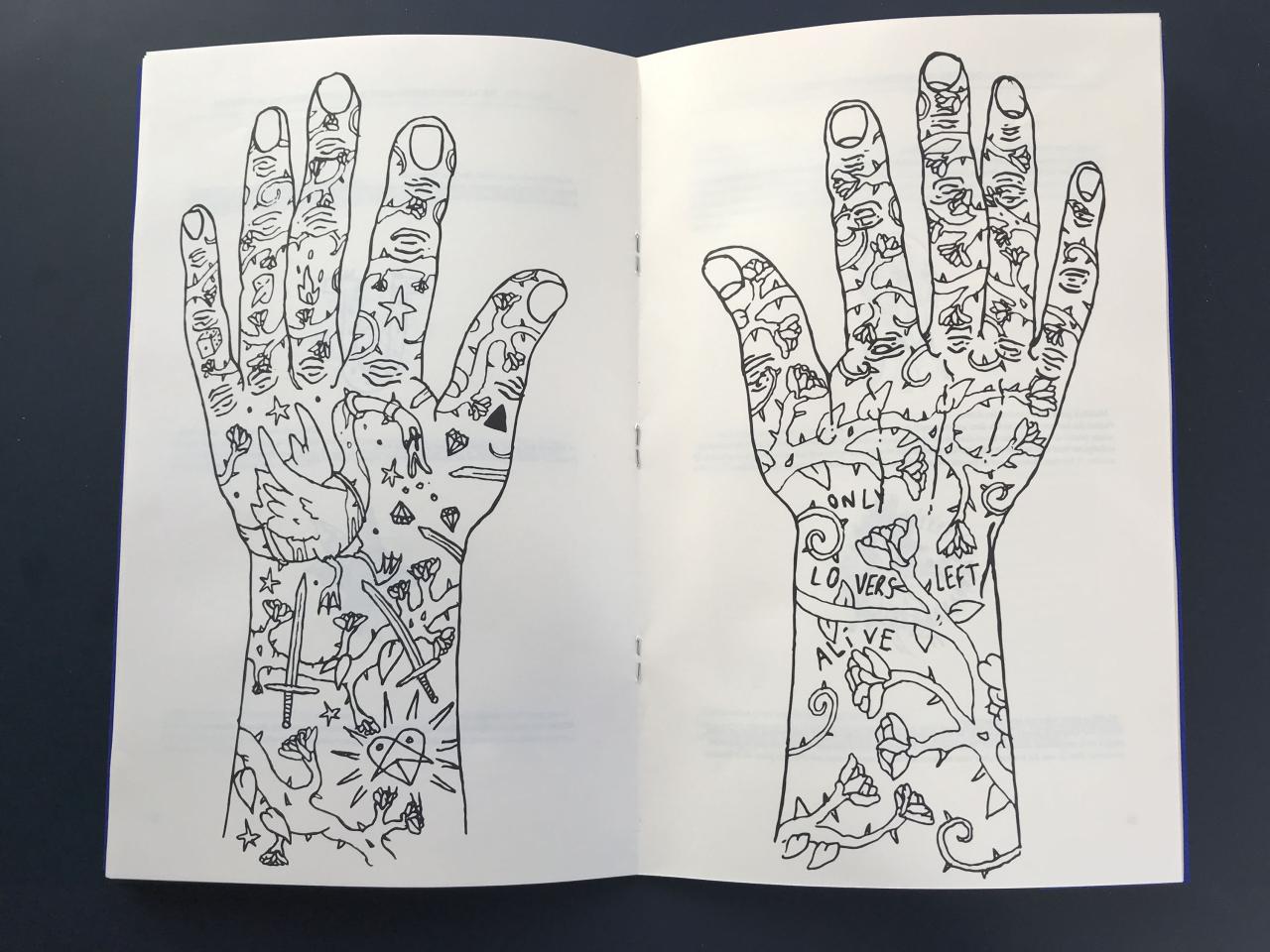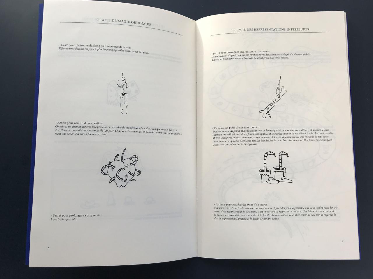Ce livre, sorte de grimoire contemporain, offre des recettes simples pour “ne pas perdre le nord” ou pour “reconnaître quelqu’un que l’on connaît pas”, pourrait être le fruit d’une union entre l’oeuvre d’Alfred Jarry et celle de Jacques Carelman, oscillant entre rationalisme de l’absurde et sciences du renversement. Ces propositions sont accompagnées d’illustrations originales vouées à devenir des tatouages réalisés par l’artiste lui-même.