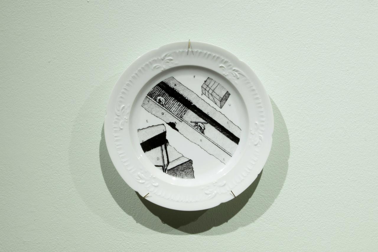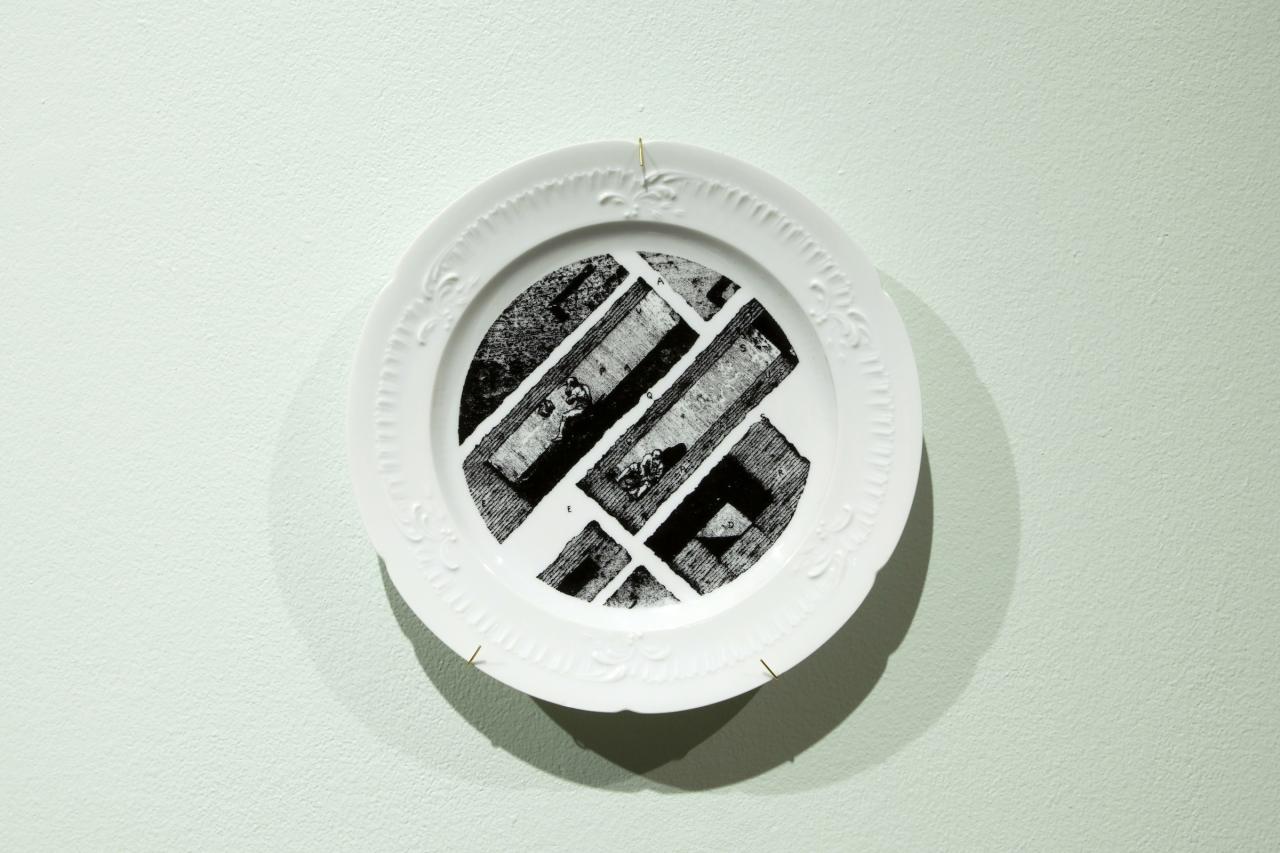 Soupe Grasse 04, 2024, installation, sérigraphie sur assiette, diamètre 25,6 cm, photo Phœbé Meyer, détail