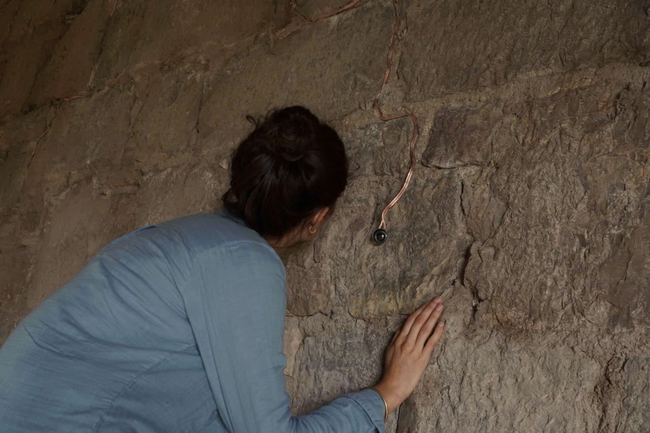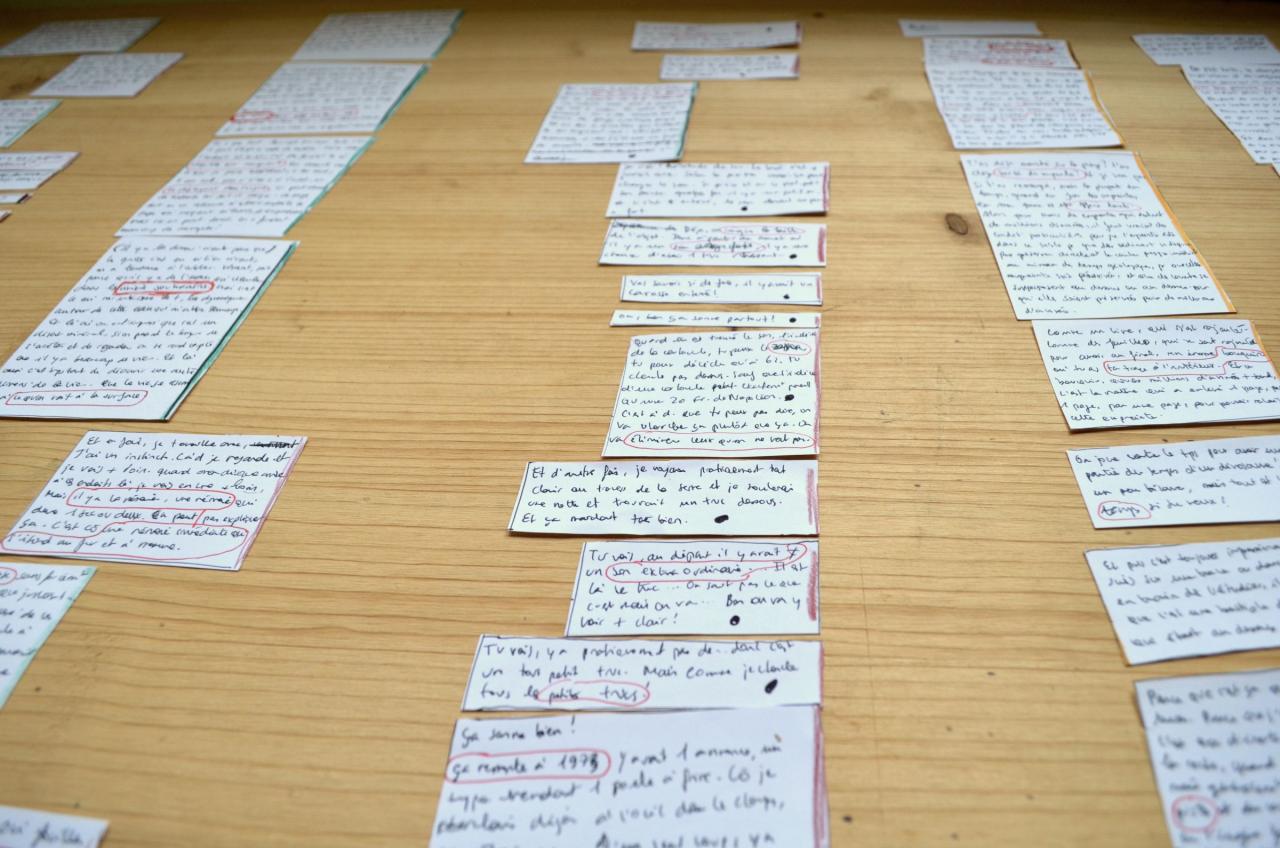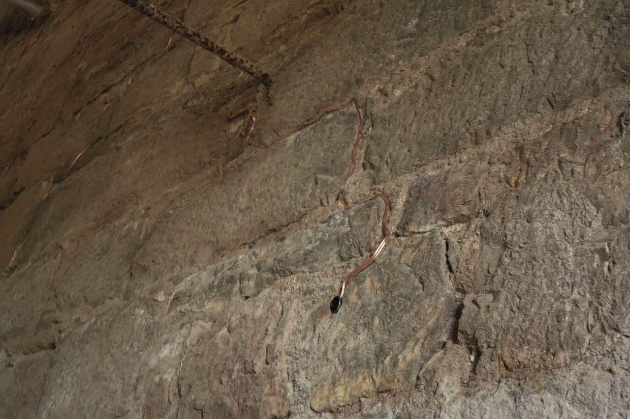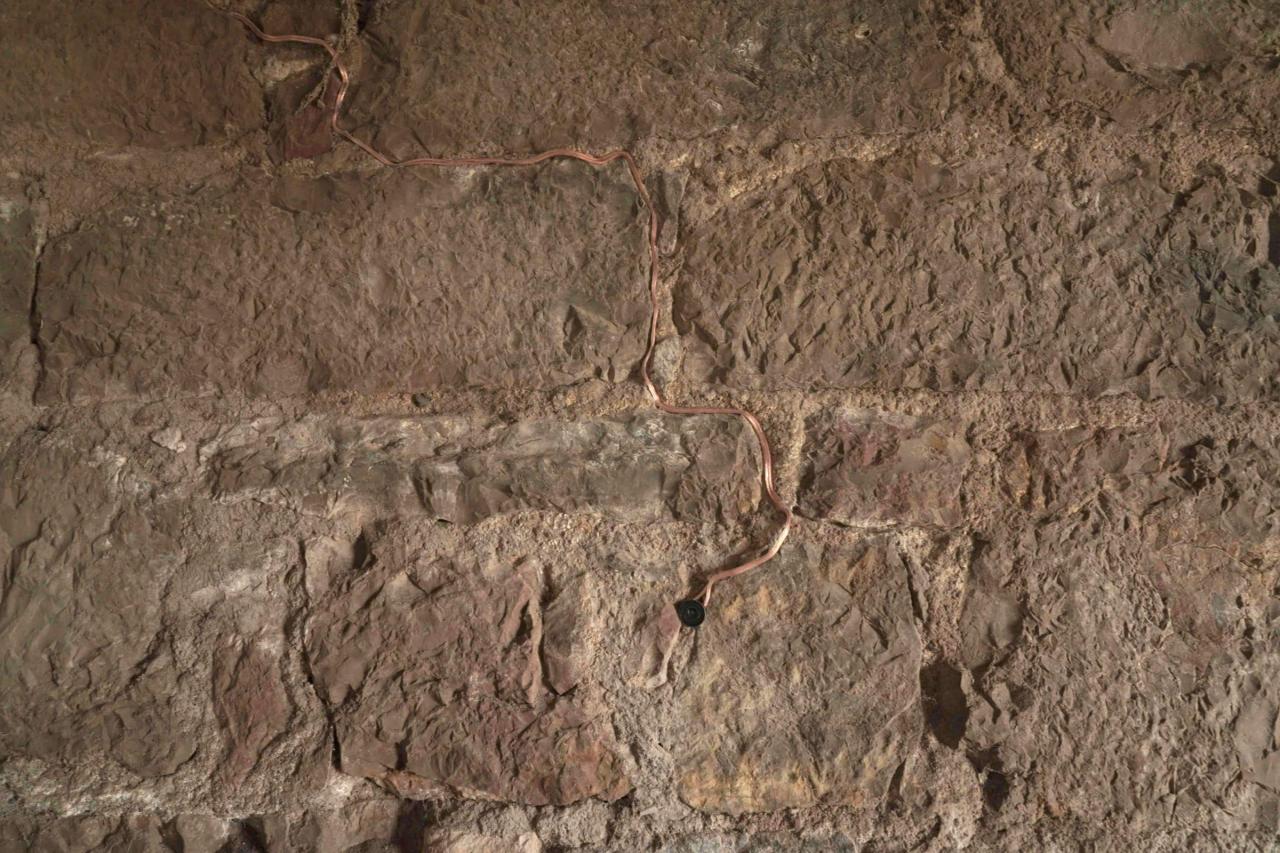 L’artiste recueille les paroles de personnes qui révèlent, ici, les couches de la surface de la terre ou du corps humain. Elle creuse leurs paroles, recherche les strates d’histoires, de mémoire et de rêves enfouis. Un sourcier et une femme qui enlève le feu ; un paléontologue sur les traces de dinosaures en Australie parle de la qualité de la relation des Aborigènes à leur terre ; le géologue responsable de la réserve nationale géologique du Lot décrit les processus d’enquêtes propres à sa pratique de terrain ; un chercheur de métaux met au jour des déchets, comme des trésors. Laura installe ces mots à même les murs et leurs fissures pour faire apparaître la mise en relation des voix qui, côte à côte, parlent de ce qui peut nous relier.