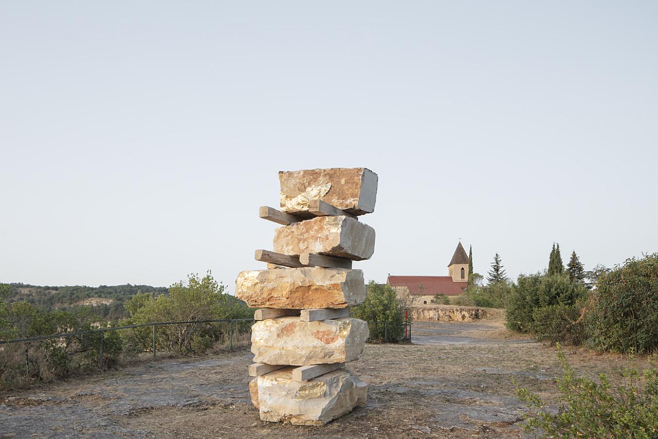 The raw stone blocks extracted from a local quarry, moved to the Rocher de la Baume panoramic site and to the village’s intimate parish hall, encourage visitors to frame their experience of the surrounding and distant landscape. Between nature and artifice, Lucie Laflorentie highlights certain surfaces to create areas of contemplation and plays of light, while working on planes and lines, textures and grooves, breakthroughs towards the horizon.