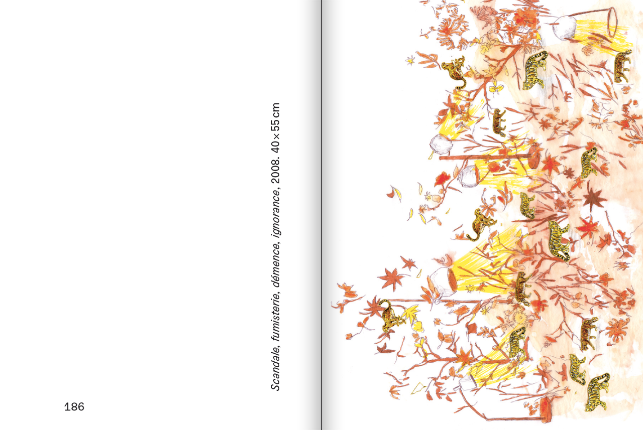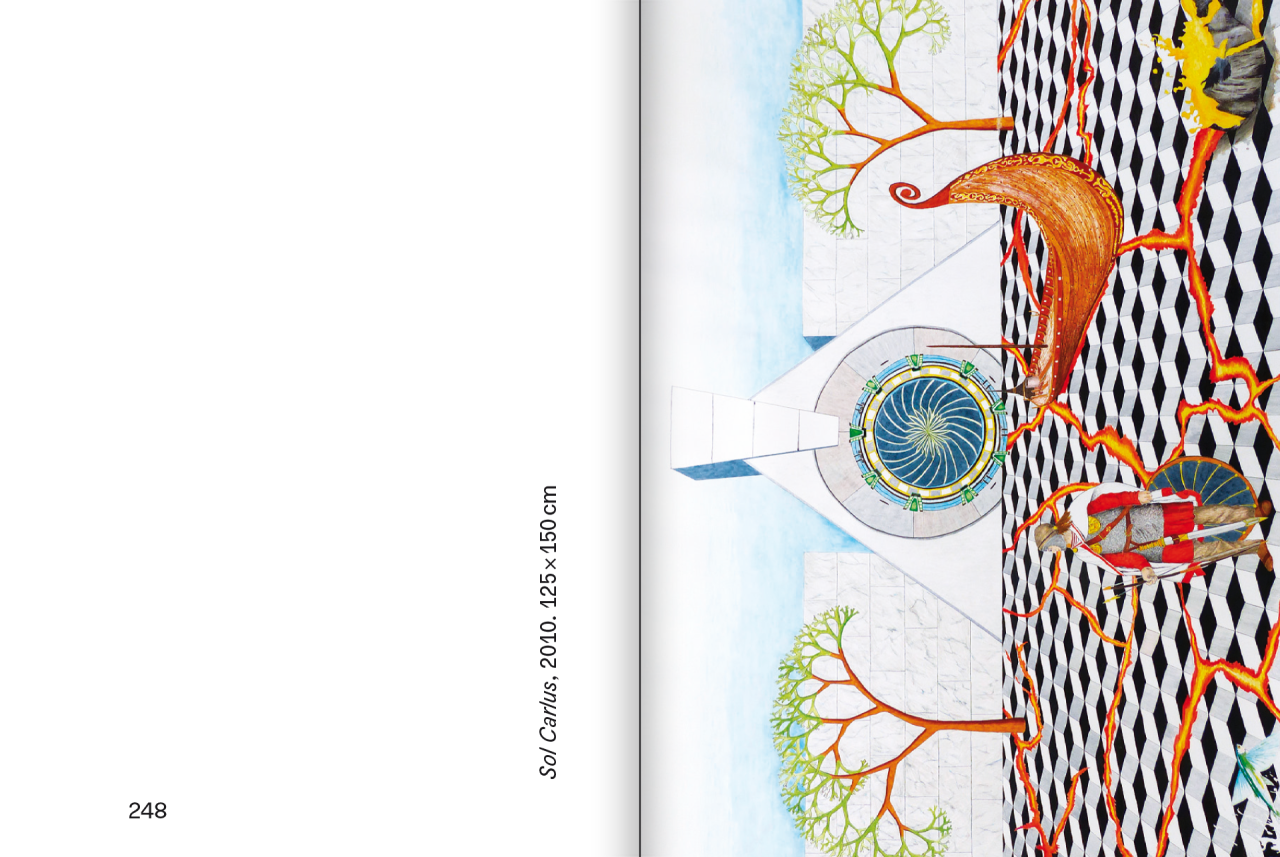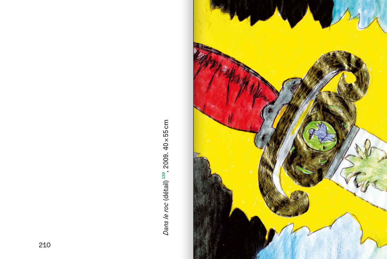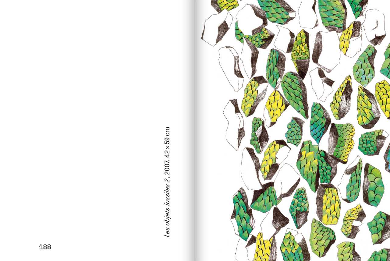 La chimie des visions est une monographie. Elle rassemble, en son sein, des propositions, des expositions réalisées par l’artiste entre 2007 et 2014. La polysémie des projets impose un climat dense, tendu. Cet ouvrage est conçu tel un imagier qui laisse à voir un univers onirique fait de figures et motifs baroques. L’œuvre est foisonnante, l’objet-livre s’empare de cette richesse.