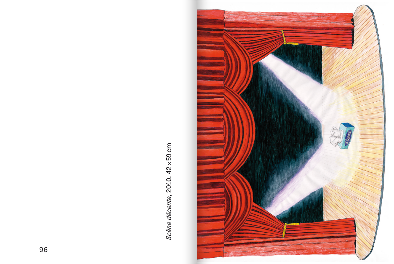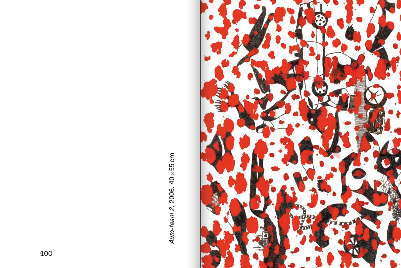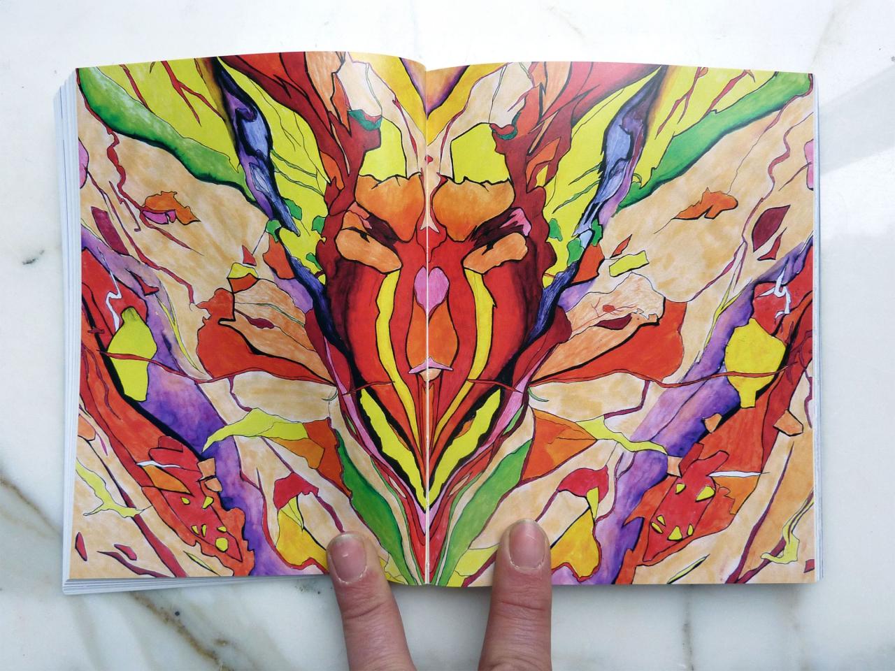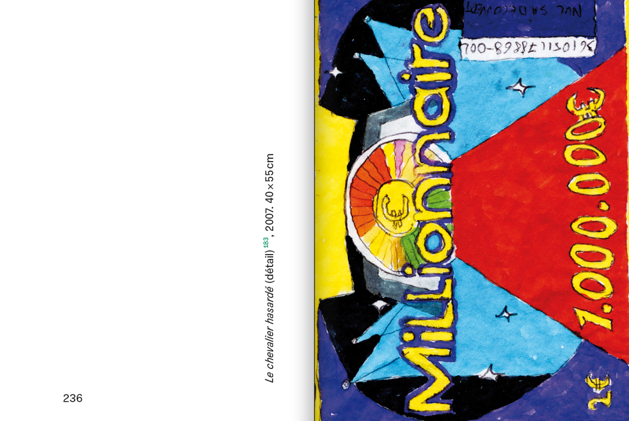 La chimie des visions est une monographie. Elle rassemble, en son sein, des propositions, des expositions réalisées par l’artiste entre 2007 et 2014. La polysémie des projets impose un climat dense, tendu. Cet ouvrage est conçu tel un imagier qui laisse à voir un univers onirique fait de figures et motifs baroques. L’œuvre est foisonnante, l’objet-livre s’empare de cette richesse.