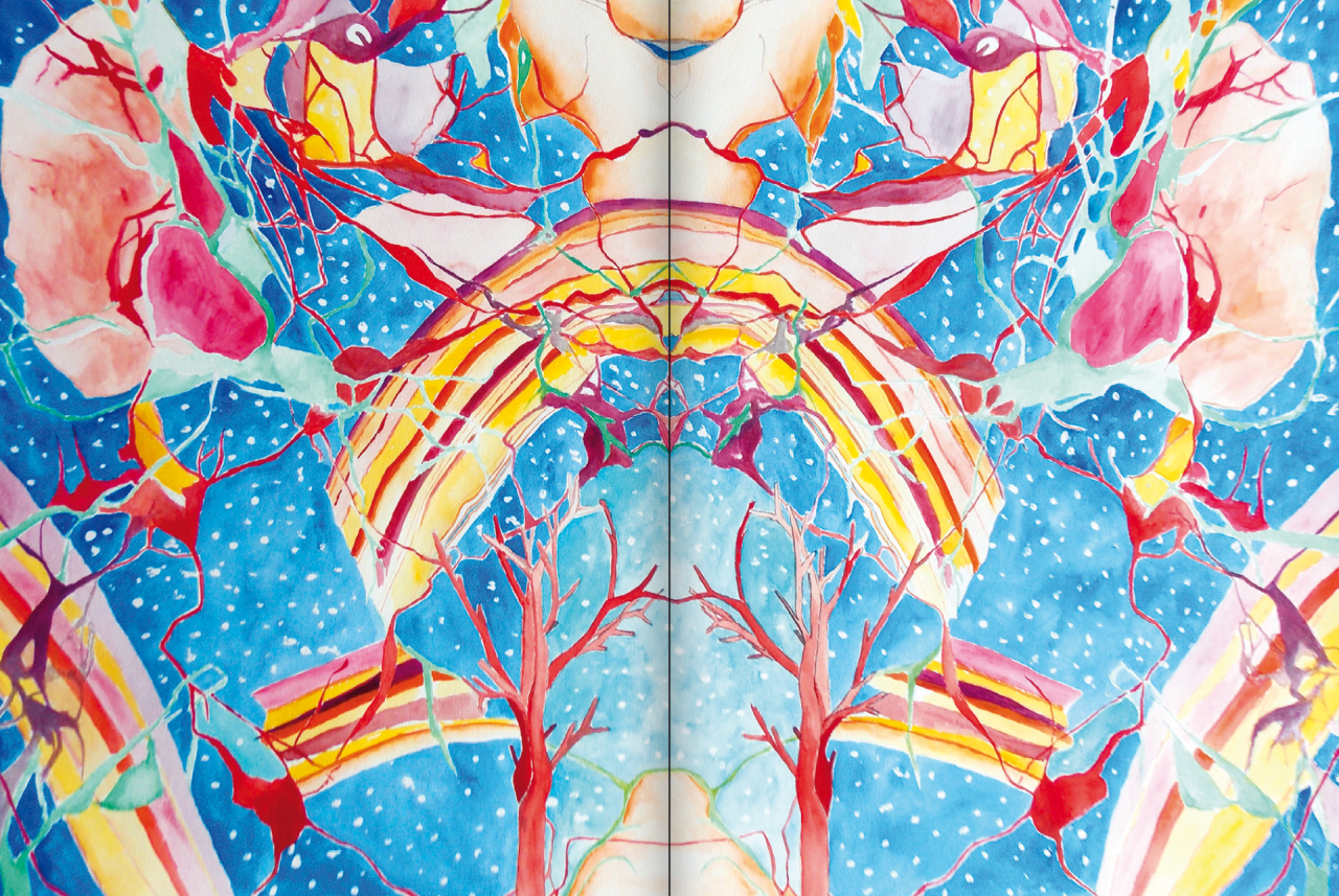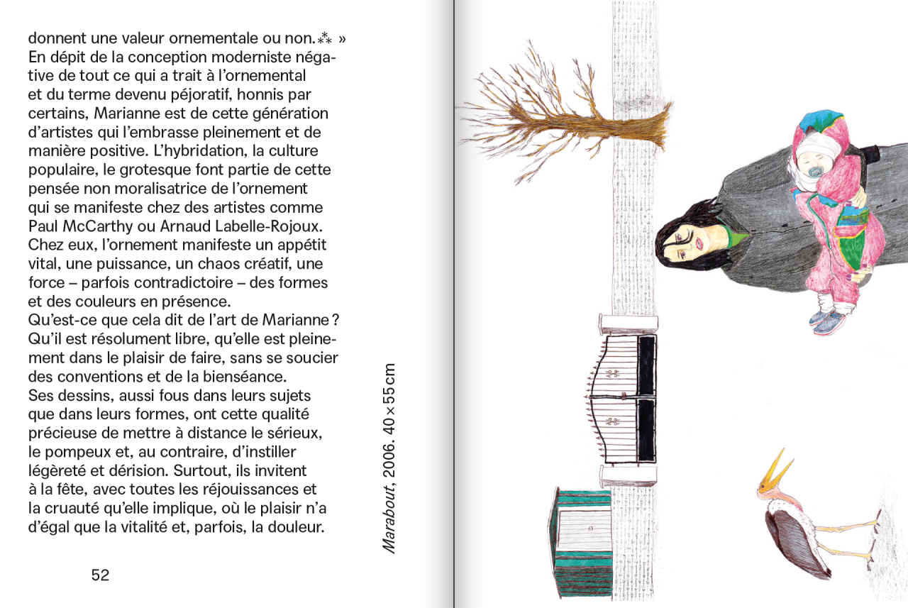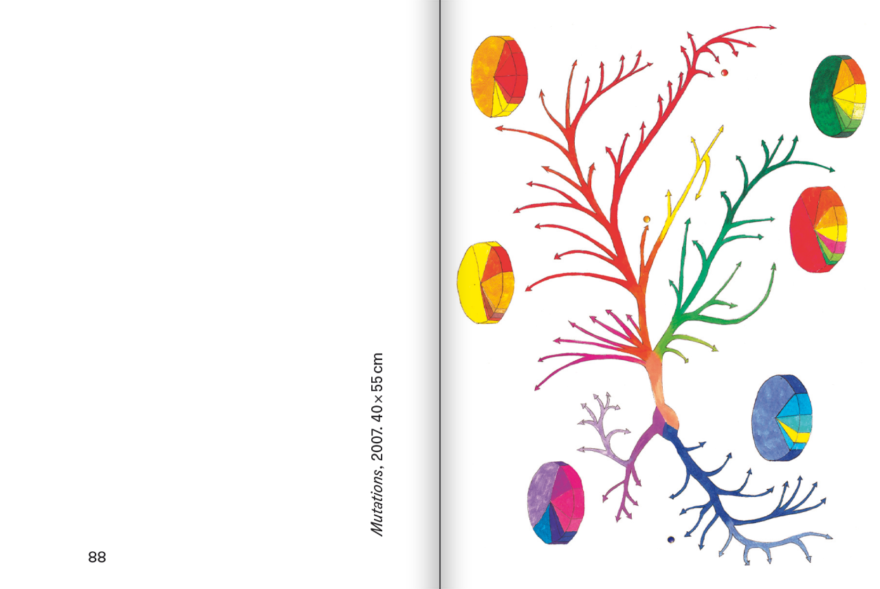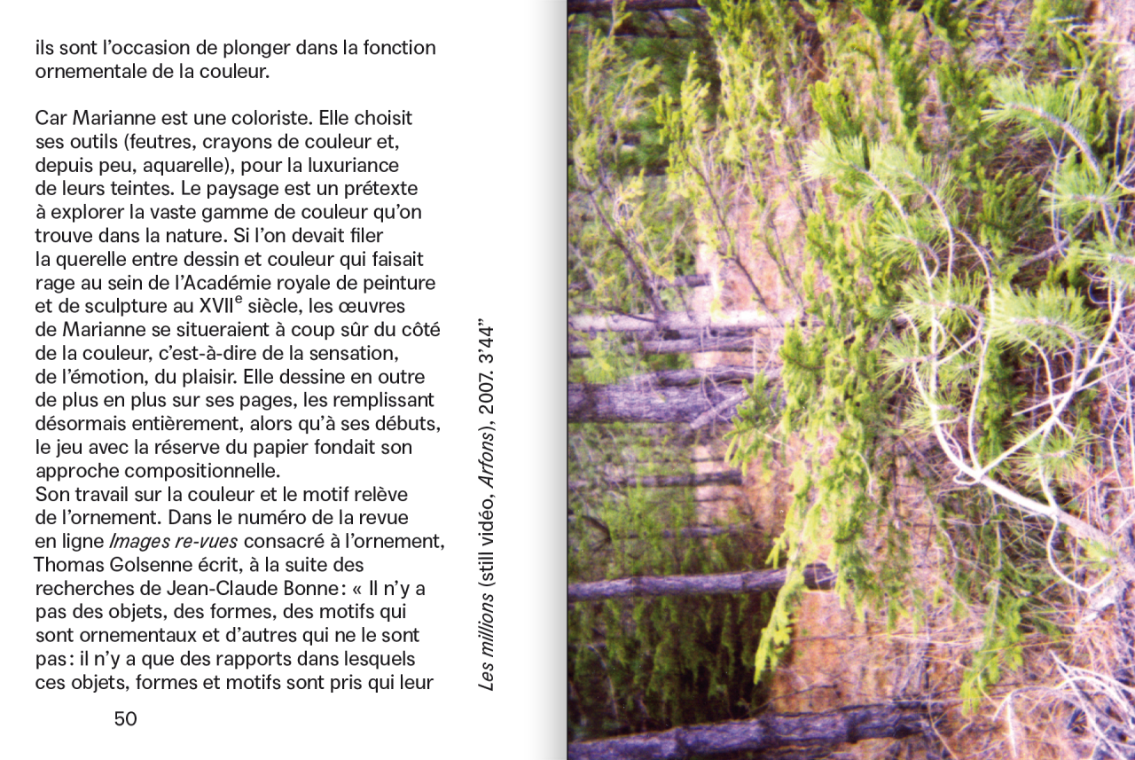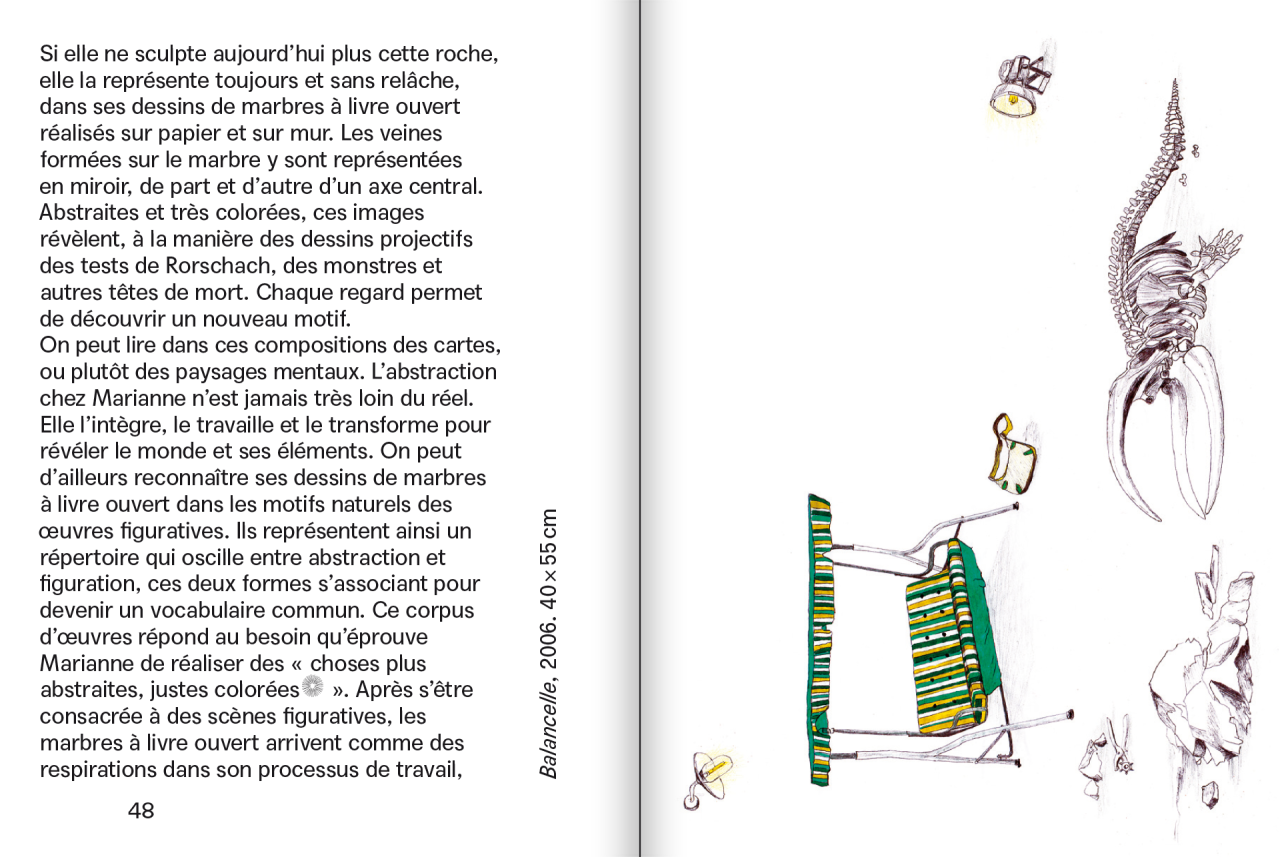La chimie des visions est une monographie. Elle rassemble, en son sein, des propositions, des expositions réalisées par l’artiste entre 2007 et 2014. La polysémie des projets impose un climat dense, tendu. Cet ouvrage est conçu tel un imagier qui laisse à voir un univers onirique fait de figures et motifs baroques. L’œuvre est foisonnante, l’objet-livre s’empare de cette richesse.
