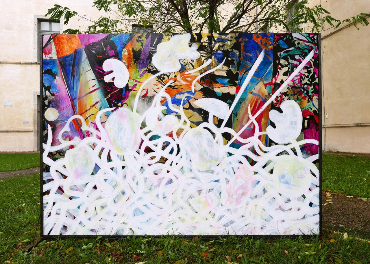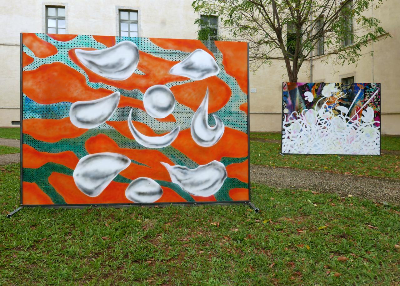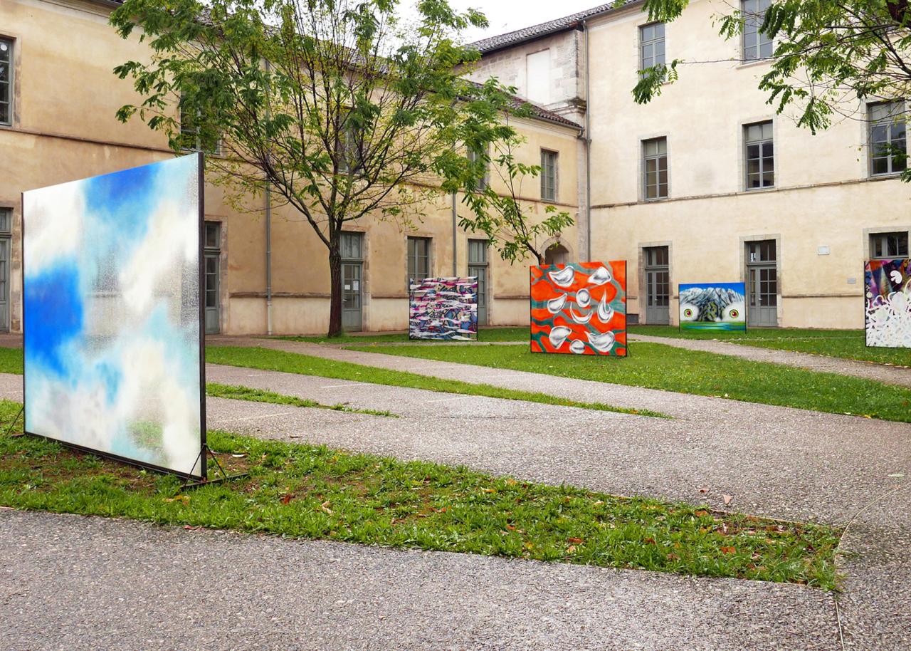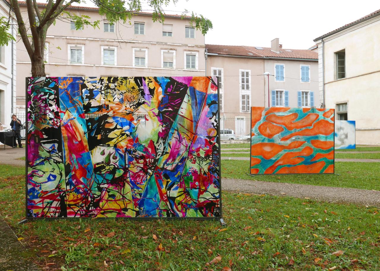 Invitée à créer une installation dans la cour du collège Gambetta dans le cadre du festival Cahors Juin Jardins 2020, Marianne Plo propose une série de peinture sur plexiglas toute en jeux de transparence, d’opacité et de matière.
