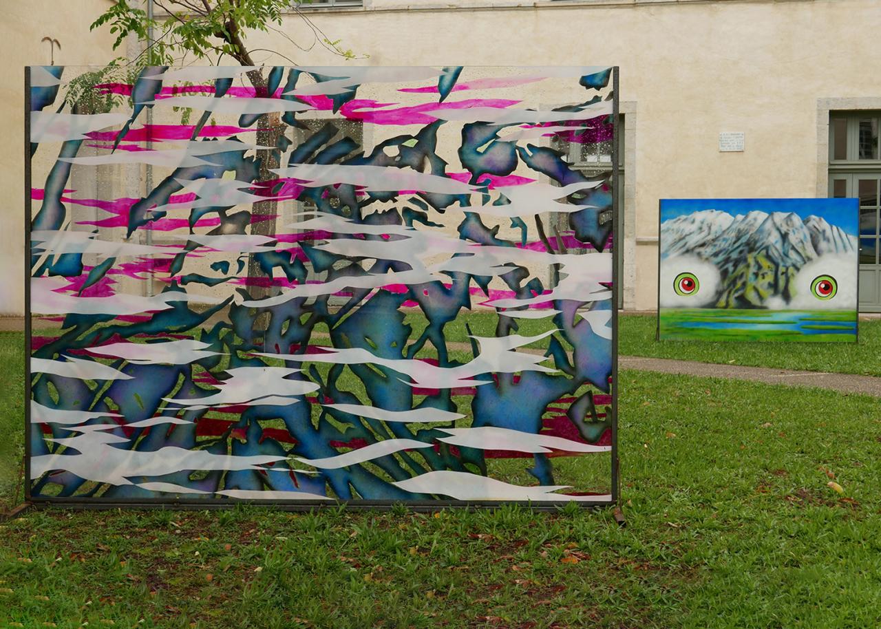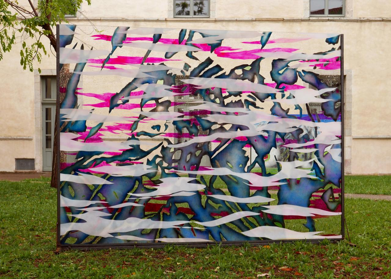 Primal screen, 2020, peinture sur plexiglass, 150 x 200 cm, vue de l’exposition Primal screen, 2020, Collège Léon Gambetta, Cahors