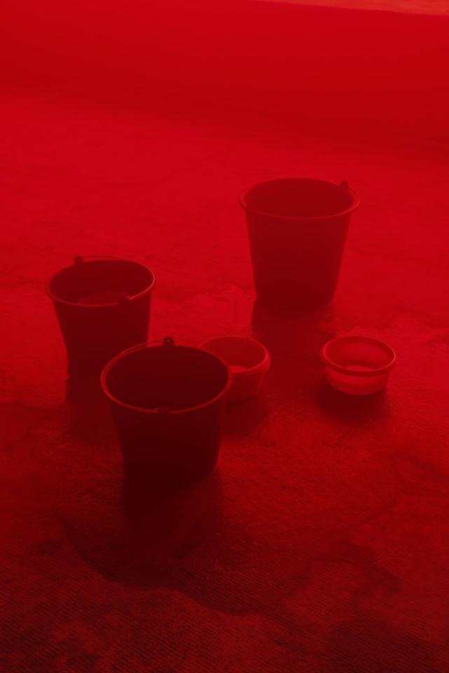 Le ressenti est mis à l’épreuve par un jeu de lumières, la température semble monter, la vapeur de l’eau devient presque perceptible.