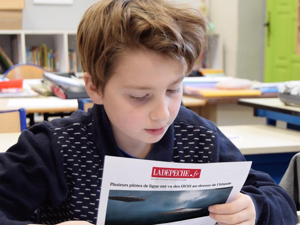 Au cours de ces six mois, les élèves ont mené une enquête portant sur la disparition d’une ufologue en Irlande, fait la rencontre d’un Alien et pris fait et cause pour la défense de ses droits de demandeur d’asile. Une aventure de science-fiction rendue crédible par les éléments apportés, chaque semaine, en classe. Photomontage d’une soucoupe volante, plans d’un laboratoire secret, faux mails, acteurs et mises en scène ont émaillé ce jeu de rôle et permis aux enfants de croire en cette rencontre avec un étranger hors du commun.