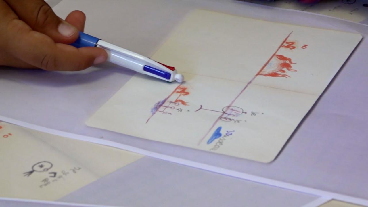 L’Alien, 2019, jeu de rôle, détail, interprétation du carnet de l’alien par les élèves