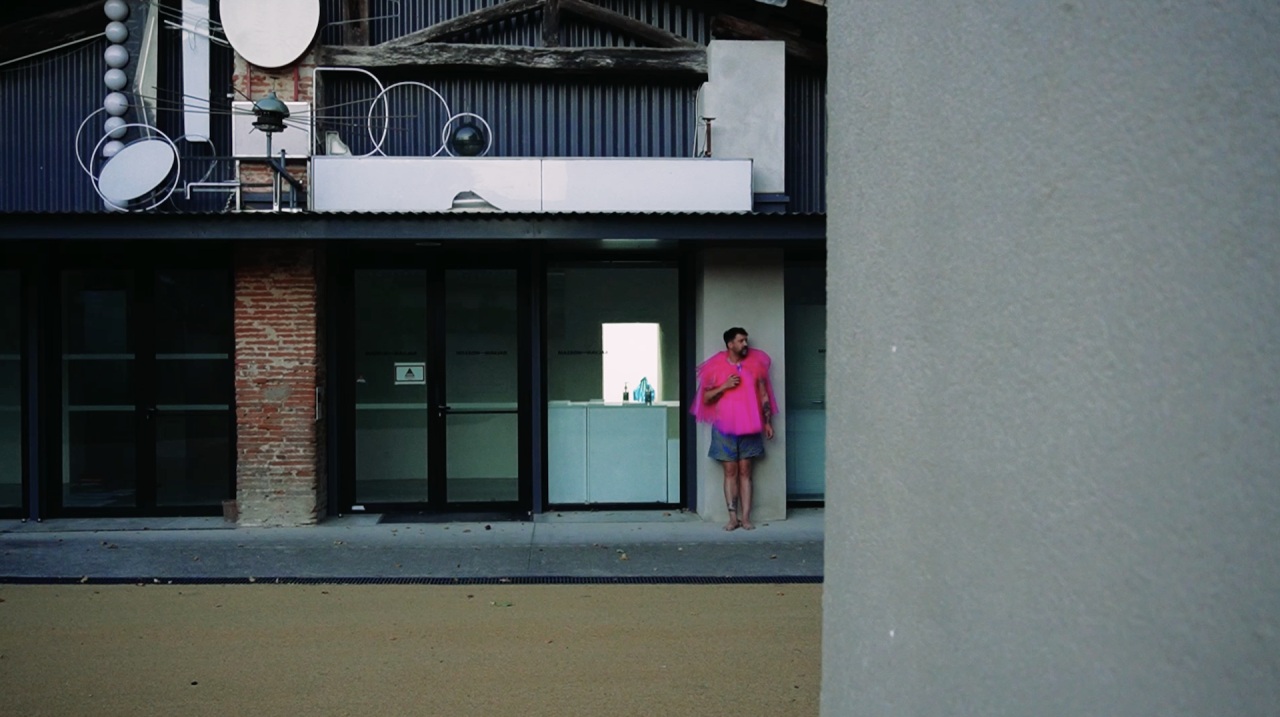 Nicolas Puyjalon, quant à lui, décida d’investir la Maison Salvan durant l’été 2024, en la recevant comme un espace d’investissement, de recours, de soin peut-être. Il plaça sa pratique habituelle de la performance au second plan, pour privilégier un travail contextuel, de résidence, donnant lieu in fine à une installation qui assemble des dessins, des vidéos, des objets. Émanant d’une recherche sur l’intime, tout ce qui est donné à voir dans sa proposition apparaît dans une forme de nudité: les dessins faits de pastel gras sur des formats A4 flottent en toute simplicité sur le mur, les vidéos se retrouvent diffusées sur des écrans dégagés di superflu. Ces dessins-inspirés à la fois parle contexte, par les premières apparitions de Gaston infiltrant le journal de Spirou et par la revue Butt* 1