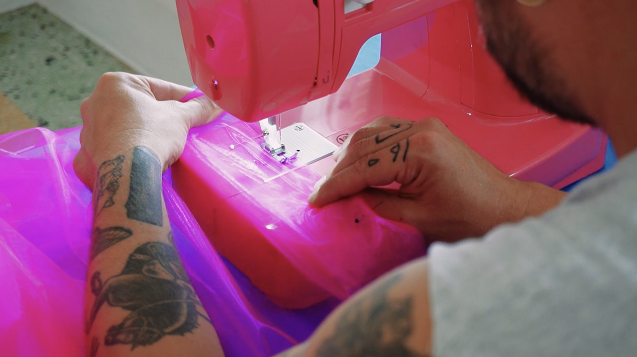 . L’ensemble de la matière dessinée et filmée façonne un corpus à la fois fictionnel et documentaire en se situant à l’intersection de plusieurs réalités. Cette matière témoigne tout d’abord de la démarche au long cours de Nicolas Puyjalon, sous une forme quasi autobiographique, par une manifestation de son travail de performance : il coud de potentiels costumes, il revisite certaines de ses actions en mettant en scène, par exemple, un repas outrancier, fait d’ambiguïtés entremêlant plaisir et malaise. Elle évoque encore la mémoire de Joséphine en sa maison. Elle renvoie enfin à des pratiques et des stratégies de communautés LGBT+ qui, depuis des décennies, puisent dans les espaces domestiques des cadres spatiaux pour l’apaisement et la lutte.