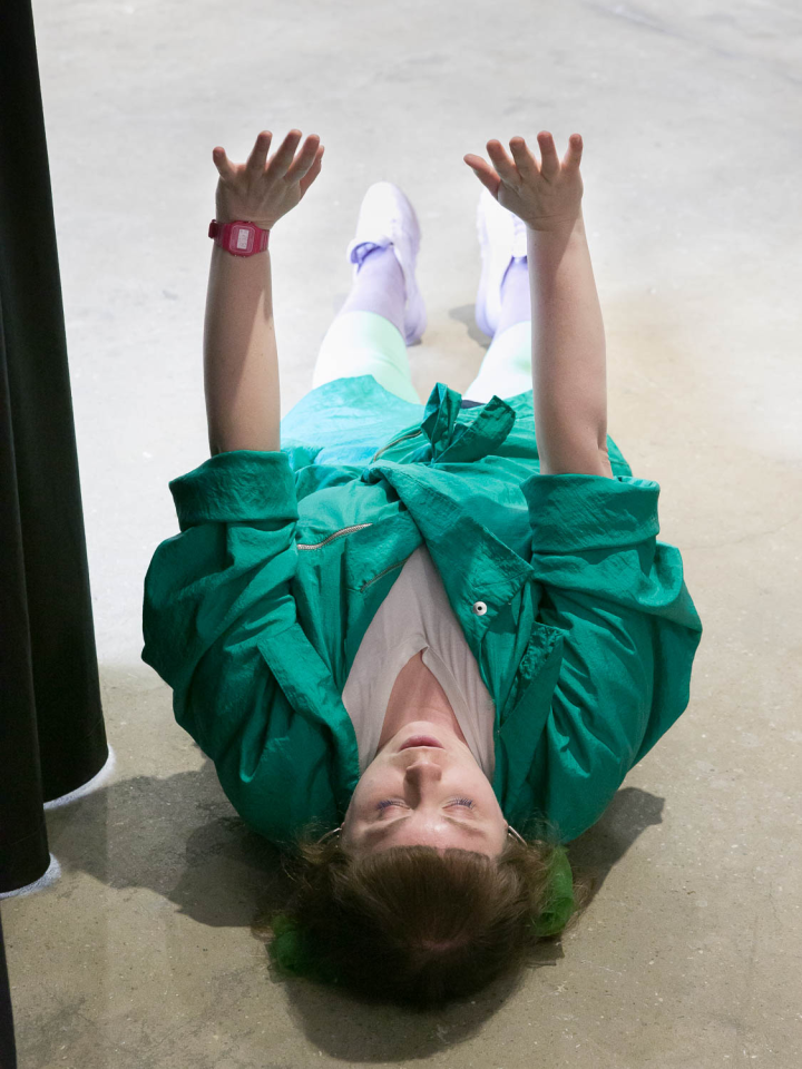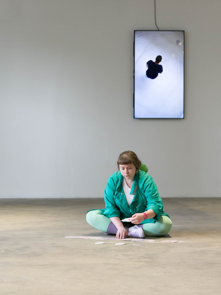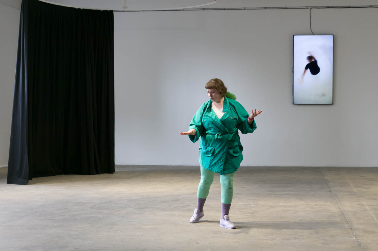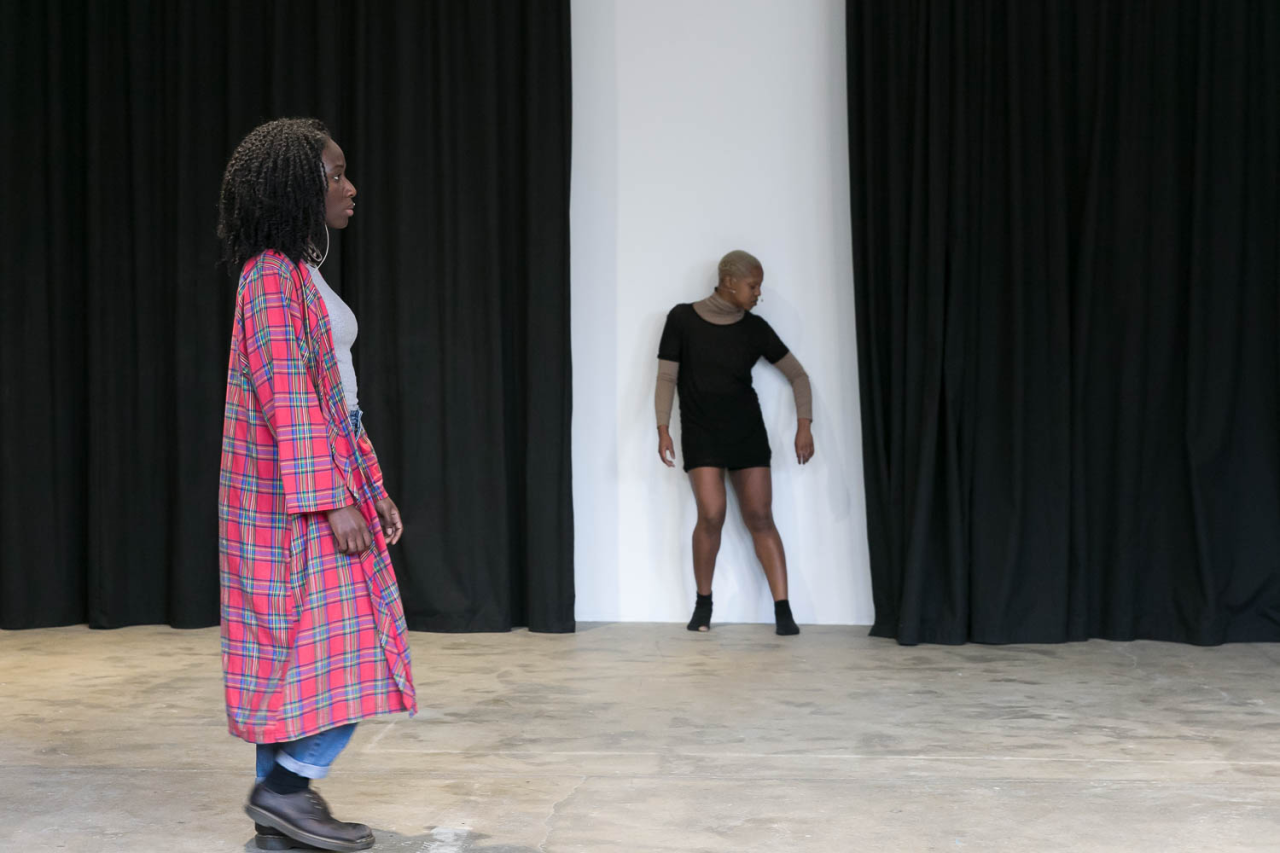 A place you only go through, 2018, performance,sound piece Sophie Mallett, performers Charlie Laban Trier, Loveday Smith and Sophia van der Putten, as part of the three-part performance A fire circle for a public hearing, 45 min, Chisenhale Gallery, London, United Kingdom, photo Mark Blower