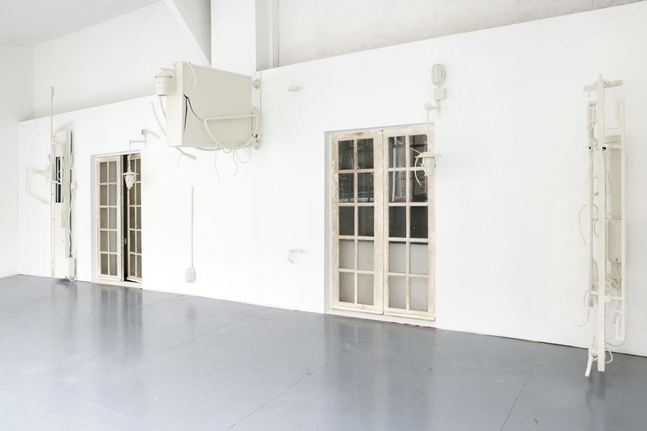 Bar parallèle, 2022, site specific installation, old signs assembly, architecture elements, electrics cables, sheats, transformers, wall render, details