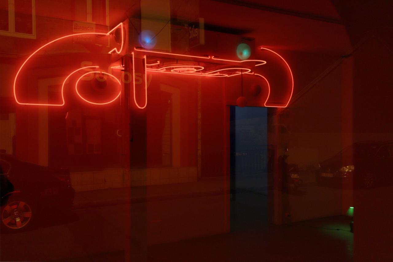 Dans mes yeux, le scintillement des néons ravive les persistances rétiniennes d’un bar parallèle. À travers la vitre, on entend le vrombissement des transformateurs et les claquements du clignoteur.