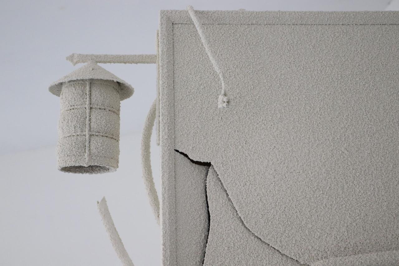 Bar parallèle, 2022, site specific installation, old signs assembly, architecture elements, electrics cables, sheats, transformers, wall render, detail