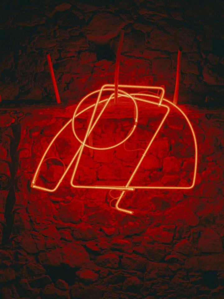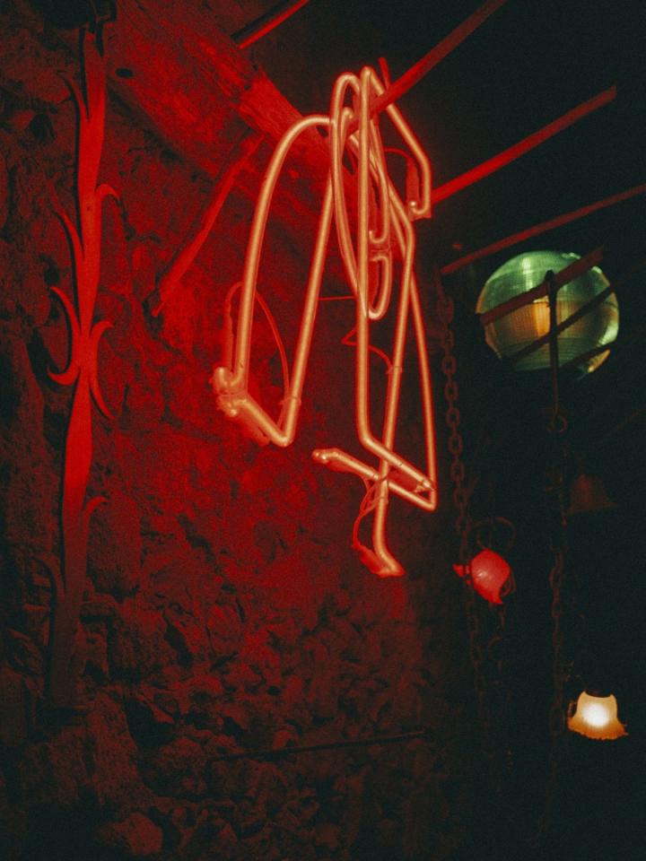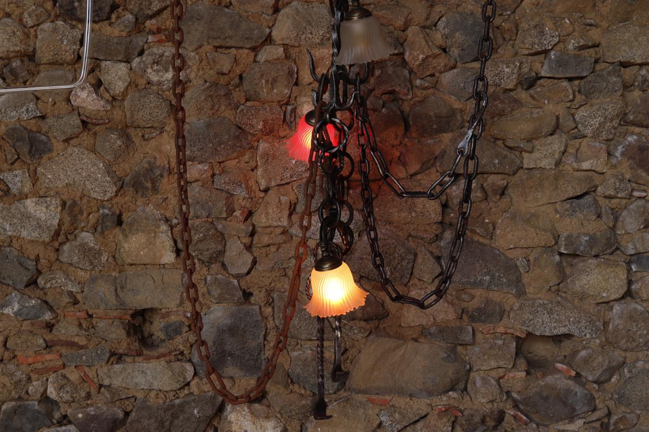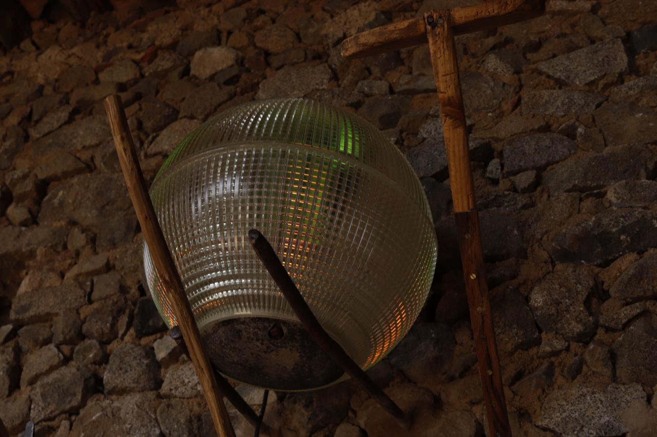 Boire à sa lumière, 2025, site specific permanent installation, light elements assembly, neons, lamps, fake fire, old rack systems, wood structure, independant switches, Entorns, in Musser, Spain, 2025, details, photos Iris Humm