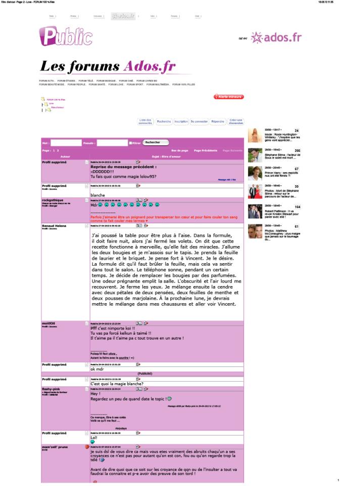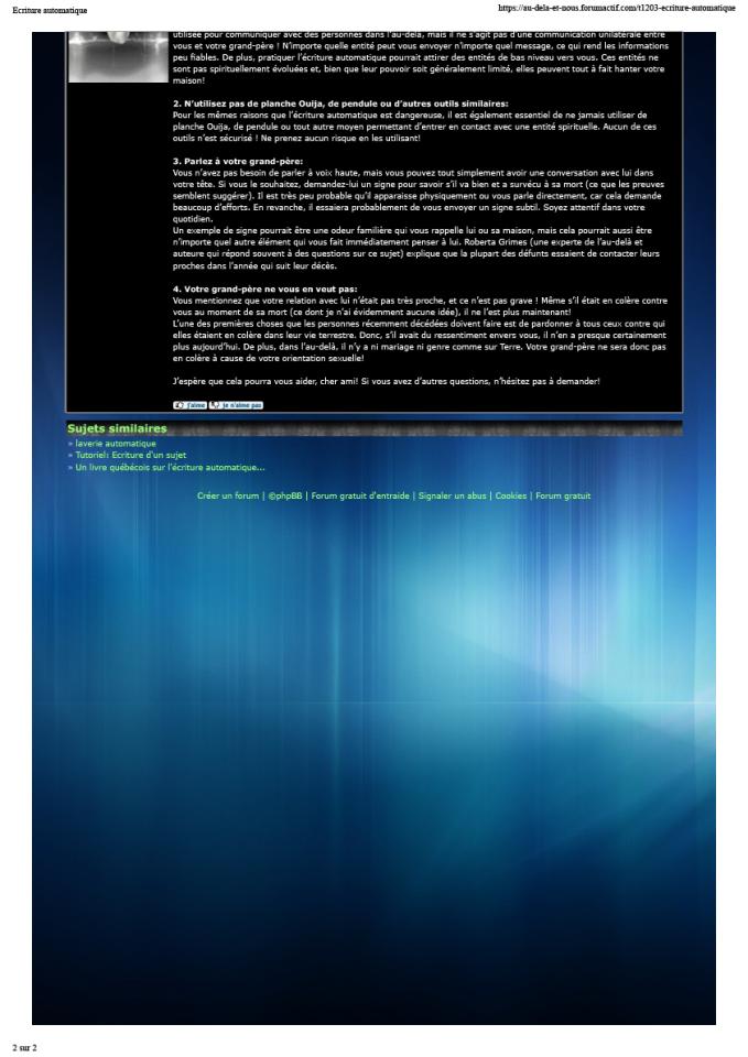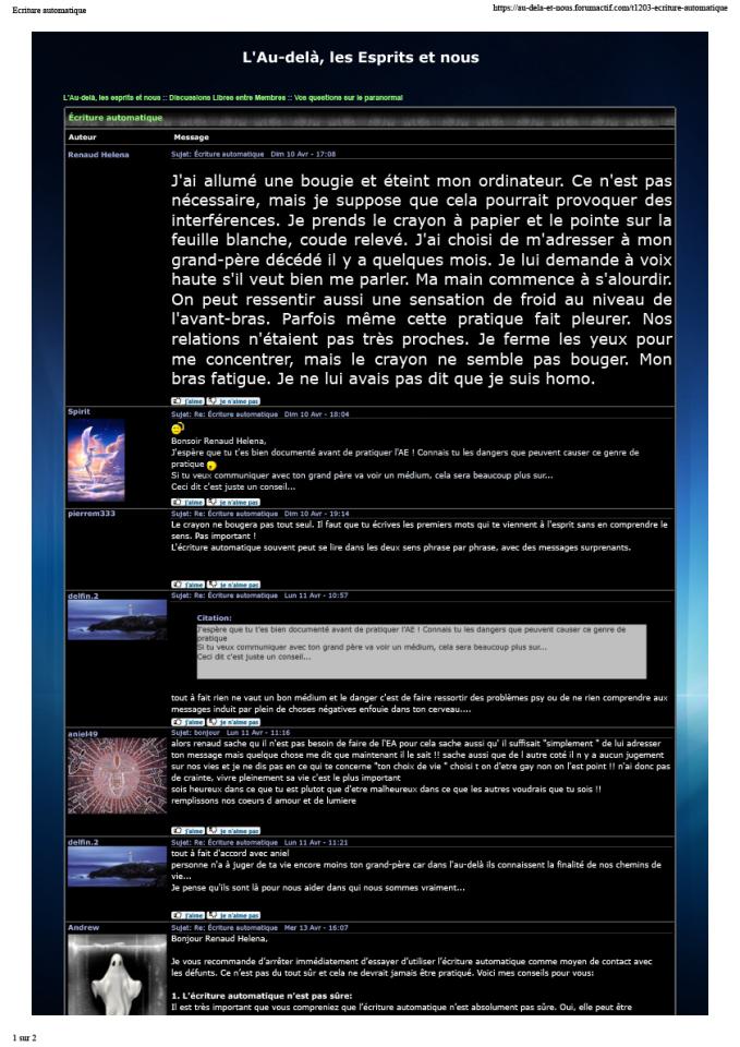 Sans titre (écriture automatique), 2010, intervention on a forum dedicated to the paranormal, capture