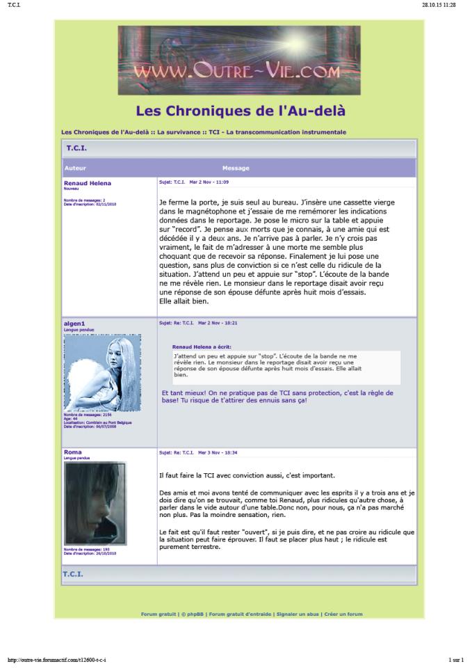 Sans titre (TCI), 2010, intervention on an esoteric forum, capture