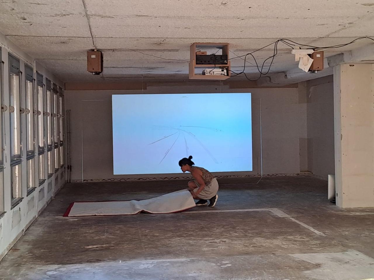 Lâcher prise, 2018, performance, La Cuisine centre d’art et de design, Nègrepelisse, France, detail filmed with an episcope