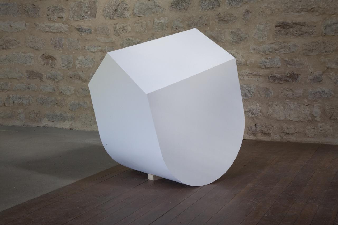 Balancier 2, 2016, contreplaqué peint, vue de l’exposition En orbite dans la tour du Vallon du Villaret, Bagnols-les-Bains, 2016