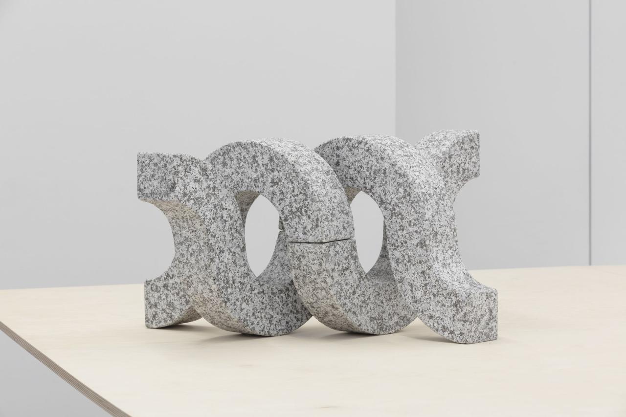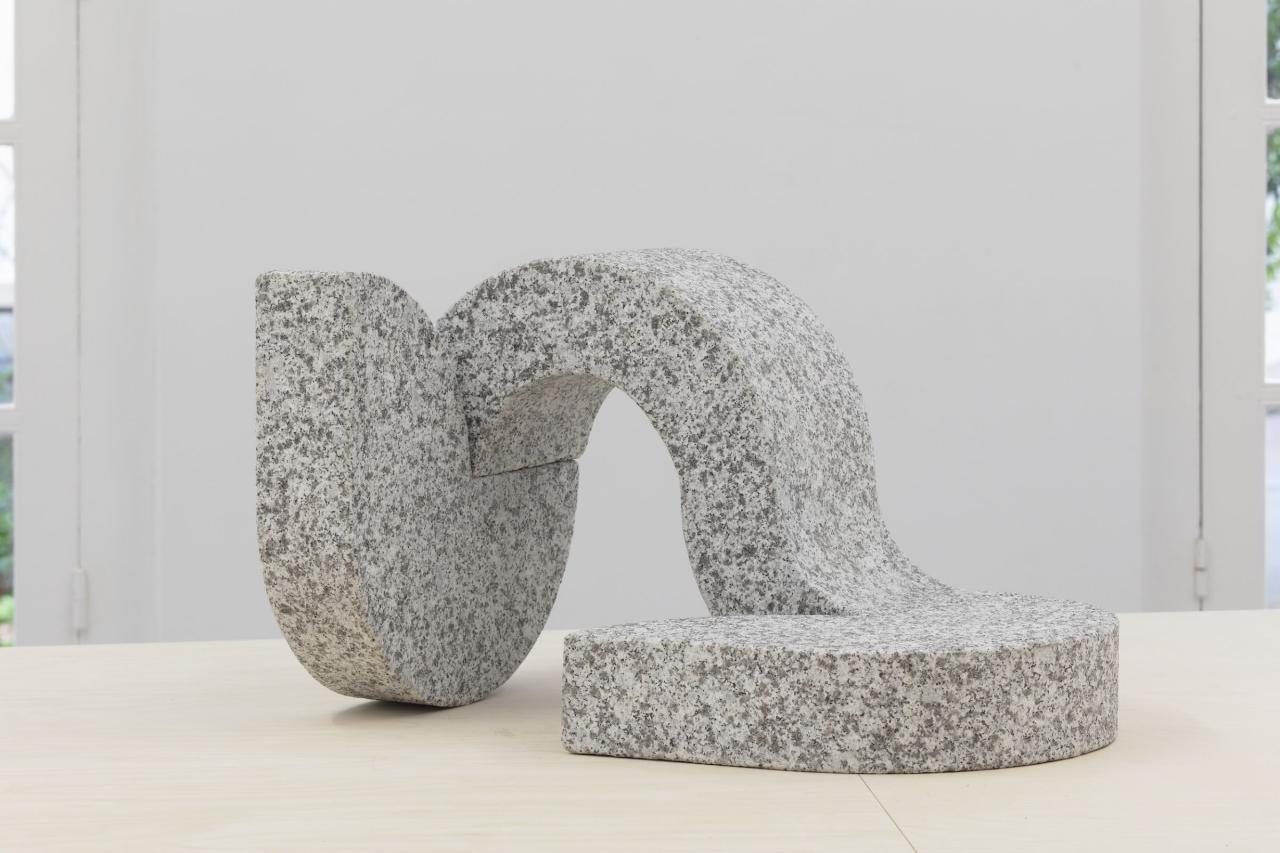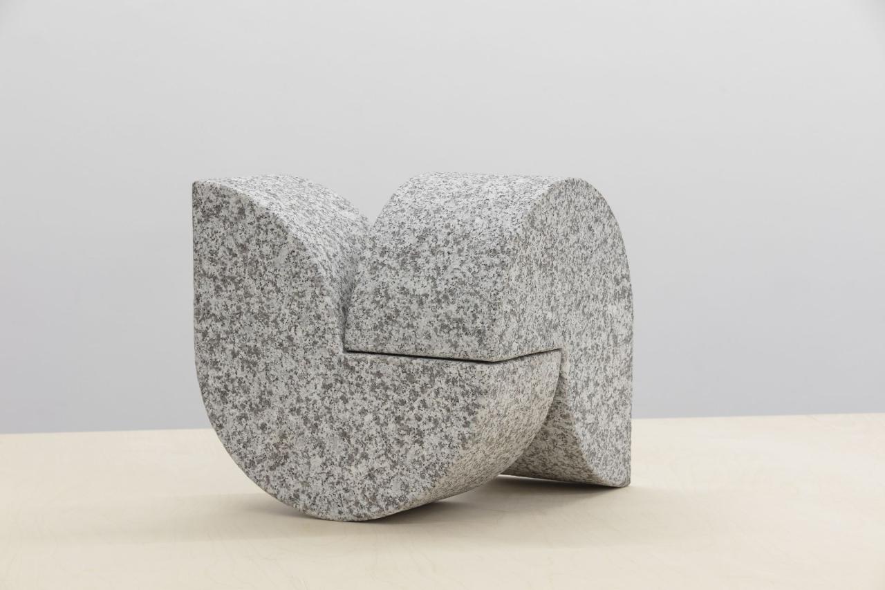 Créés dans le Sidobre, territoire d’extraction et de transformation granitière, ces segments curvilignes sont assemblés dans un équilibre en tension. Leur texture rugueuse, apportée par une finition flammée au chalumeau, révèle la plasticité de cette roche cristalline.