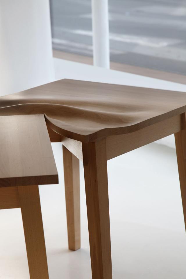 Tables choquées, 2011, hêtre massif, 68 x 74 x 74 cm chaque, photos Véronique Huyghe, Ensci, détails