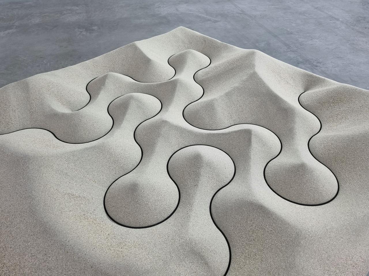 Truchet (les trois digues), 2022, sable, contreplaqué et bois, 30 x 207 x 207 cm, collection Frac Occitanie Montpellier, détail