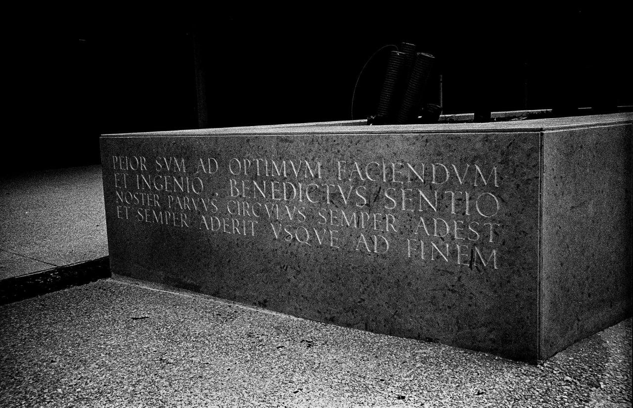 Peior Sum ad Optimum Faciendum, 2020, pierre gravée, 153 x 45 cm, Lycée Charles-Gide et métiers d’art, Uzès